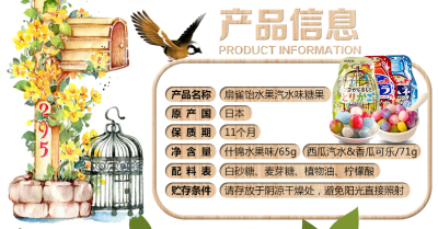 Packaging Specification: Assorted Fruity (Birdcage Pattern) 65g