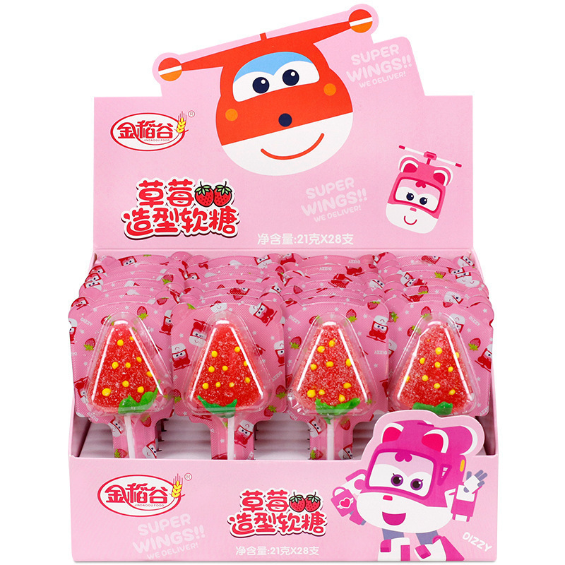 Golden Rice 21g Strawberry Shaped Soft Candy Creative Lollipop Children's Leisure Snacks Supermarket Wholesale Boxed Candy
