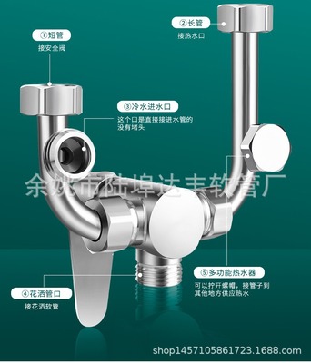 Water Heater 304 Stainless Steel Mixing Valve Surface Mount Shower Accessories Hot Cold Switch U-shaped Mixing Valve Faucet Universal