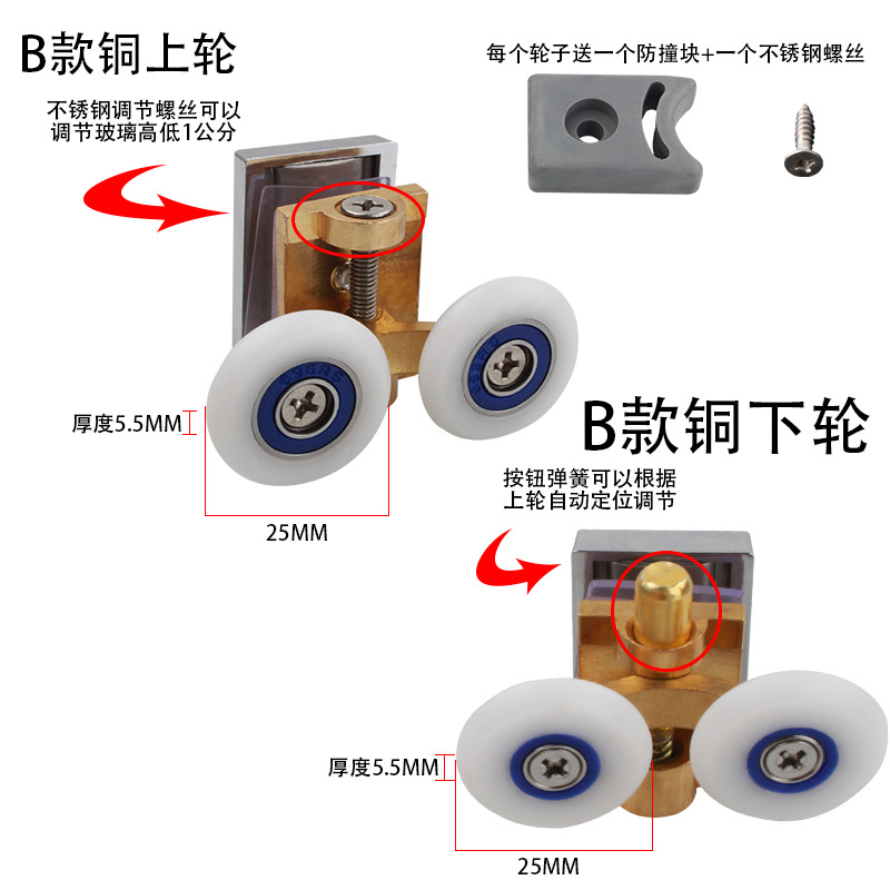Specification: Price of one 304 stainless steel B款 upper wheel + one B款 lower wheel