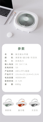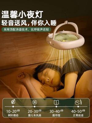 Ceiling fan that can be hung inside mosquito net on a rocking bed, suitable for home use, student dormitory, silent desktop fan with charging function