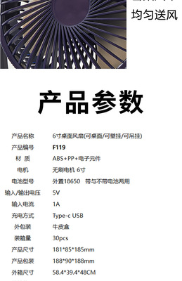 Desktop silent brushless turbo mini electric fan wall-mounted USB three-in-one portable small fan