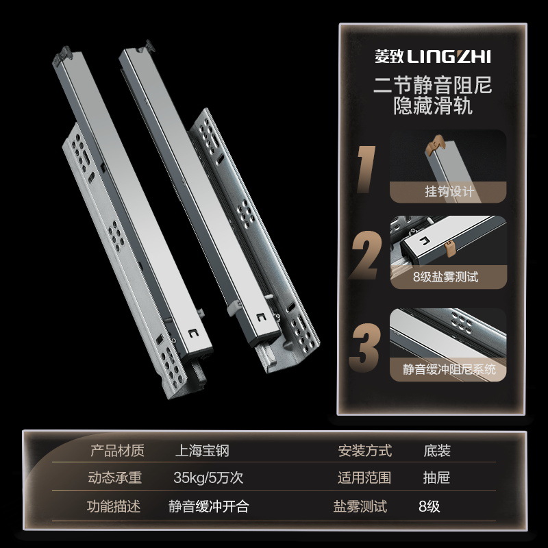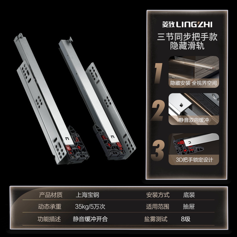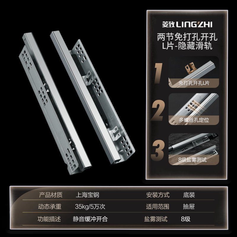 Diamond Sync 2-3 Sections Synchronous Buffer Bottom Guide Rail Hidden 18-Plate No-Hole Side-Mounted L-Shaped Drawer Track