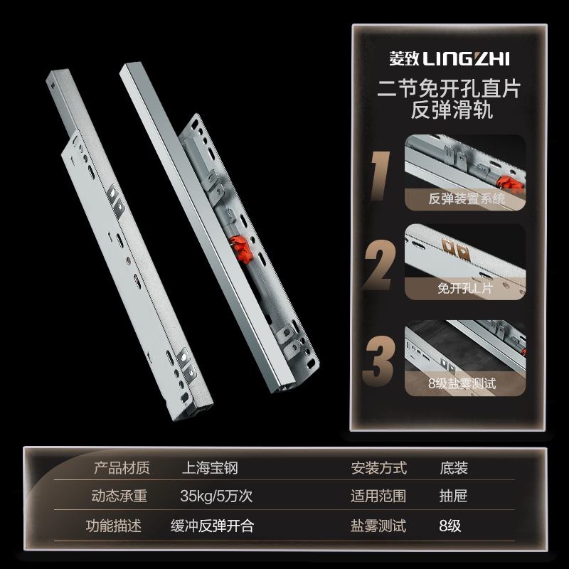 Specification: [No-Hole Straight Plate] 1.0*1.0 Two-Section Side-mounted Bottom Buffer Rail 14-inch / 350MM