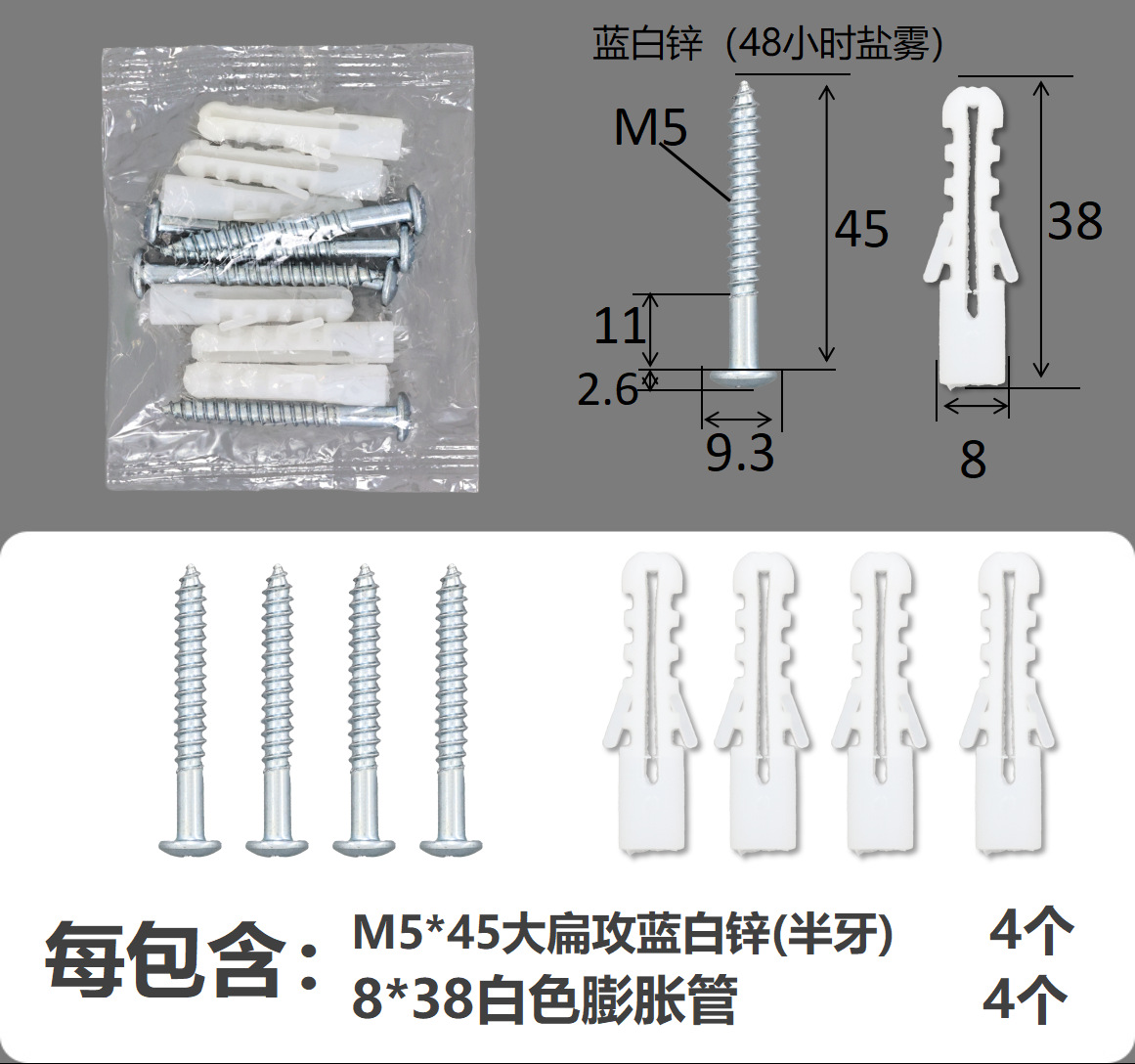 產品規格:81010153配件包(M5*45大扁攻+膨脹白色)