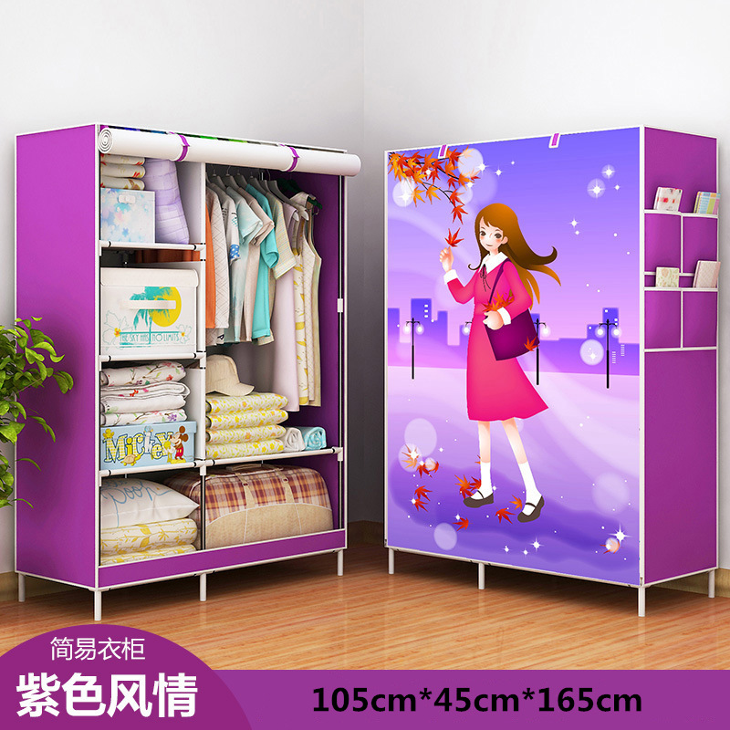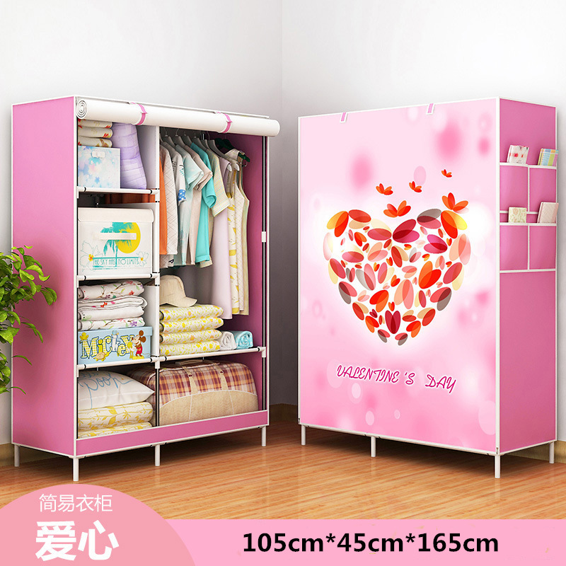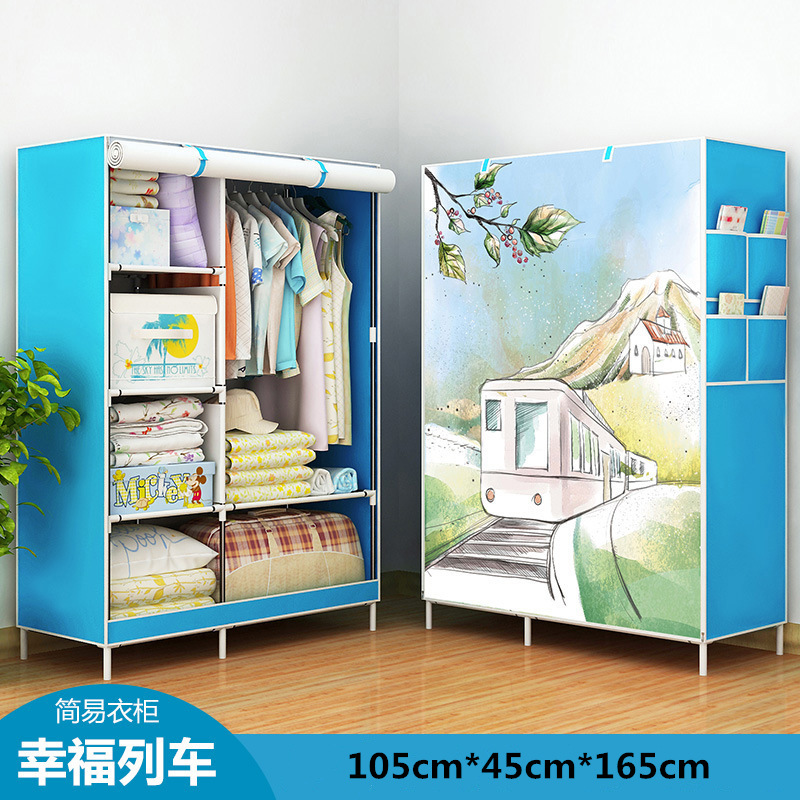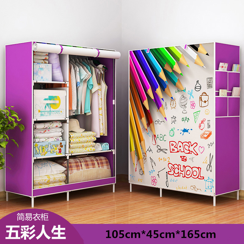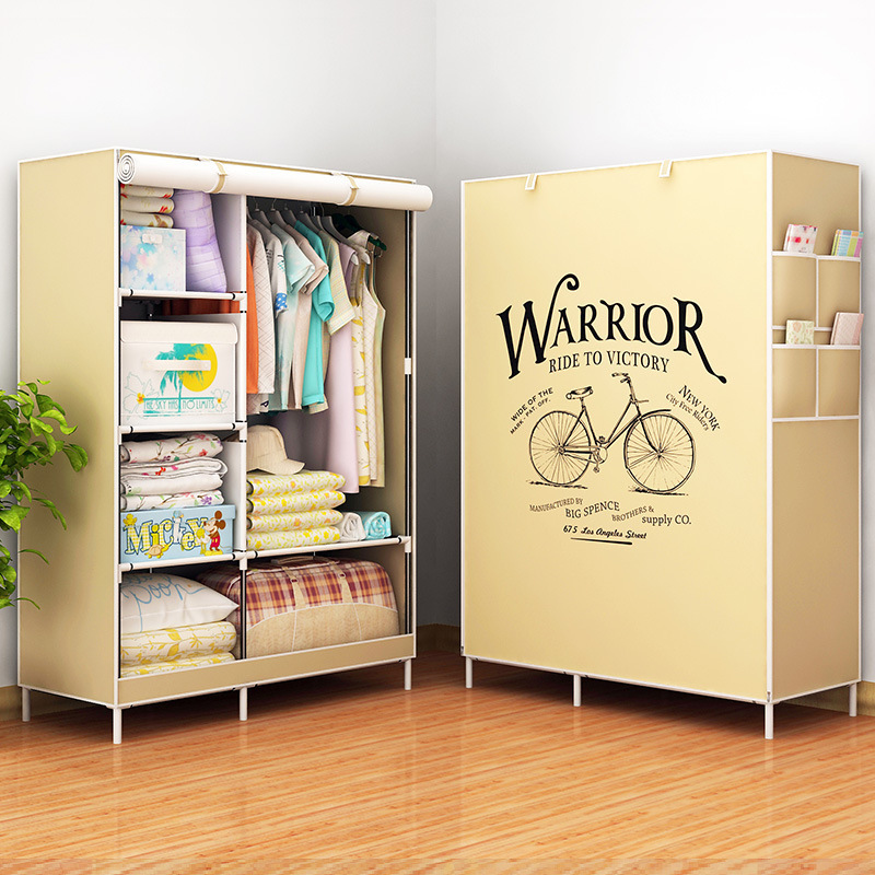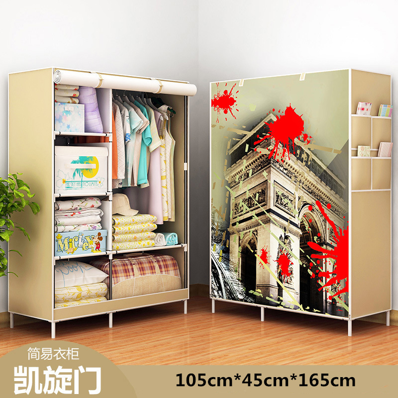 Modern Minimalist Economical Fabric Wardrobe Dormitory Rental Assembled Wardrobe 3D Pattern Metal Assembled Storage Wardrobe