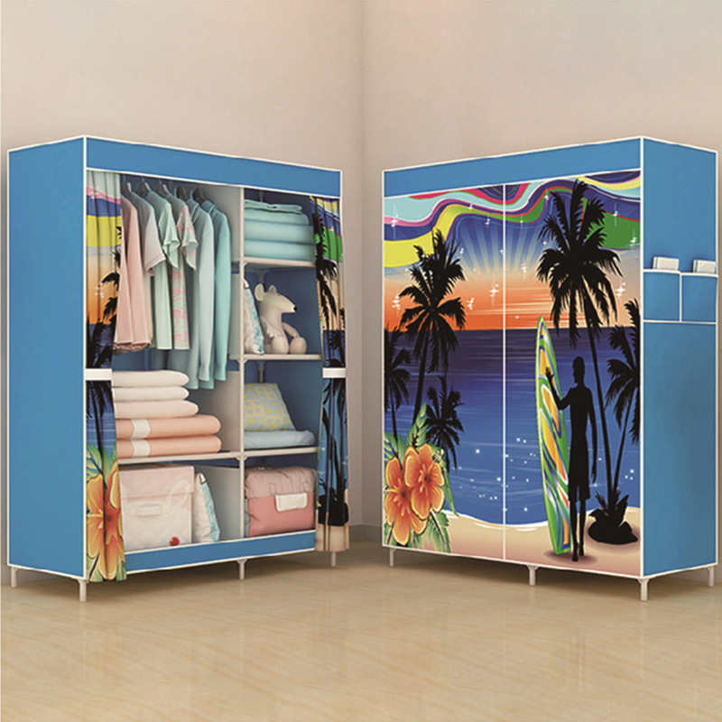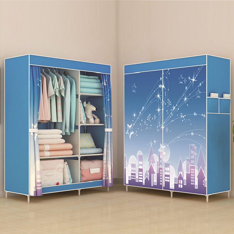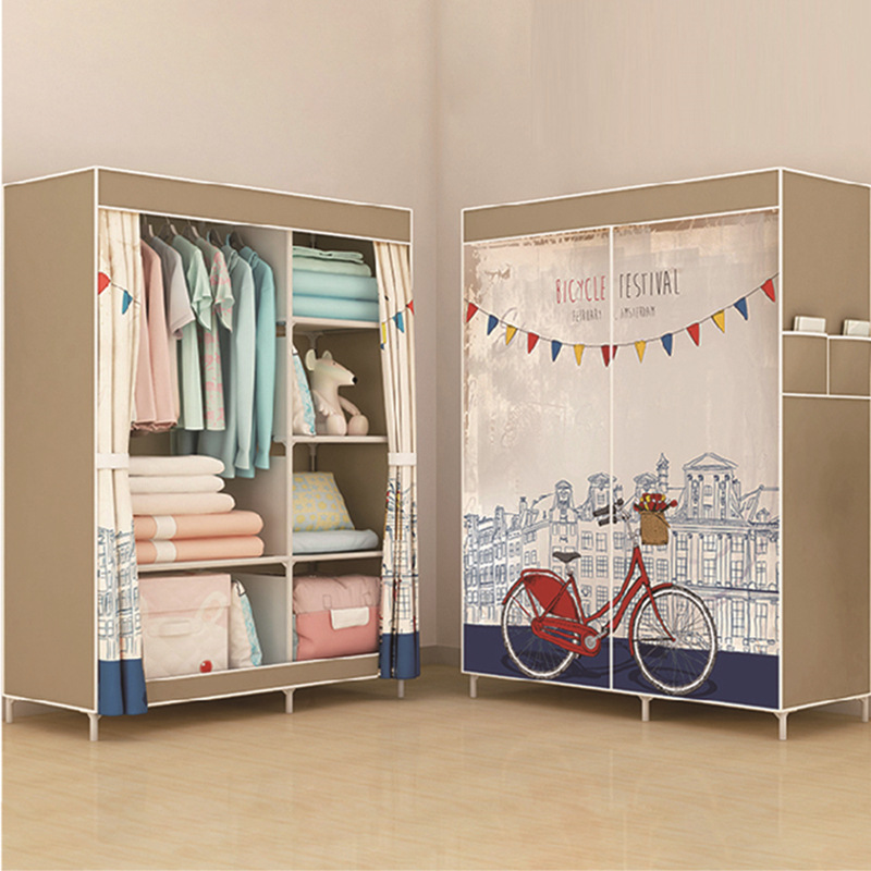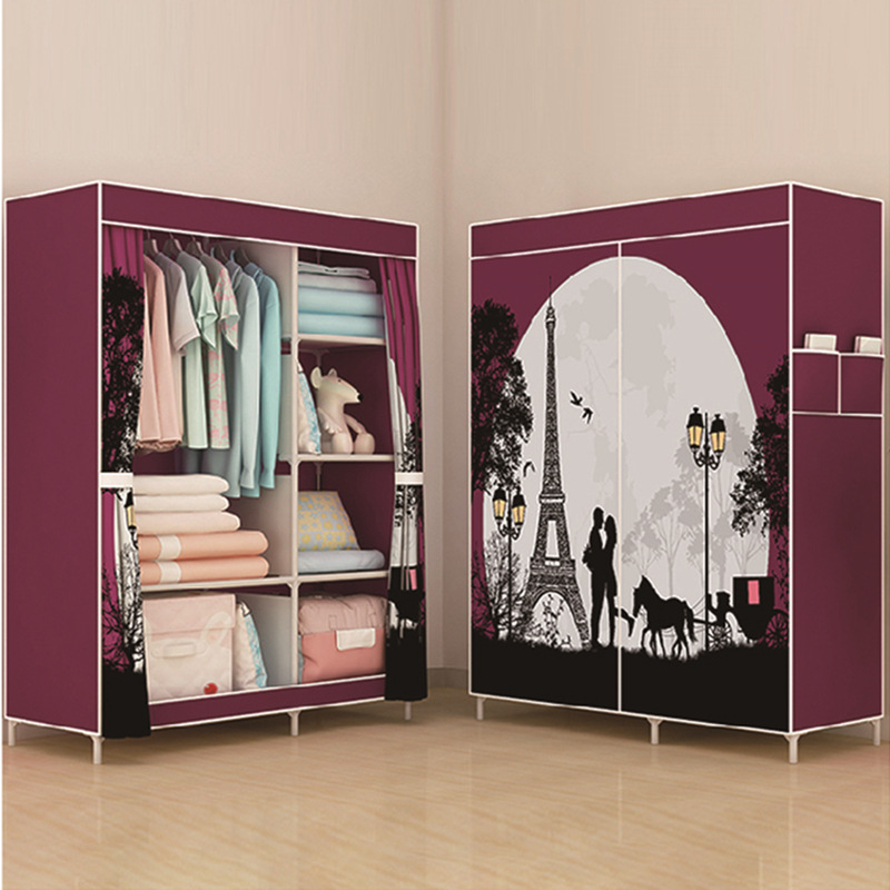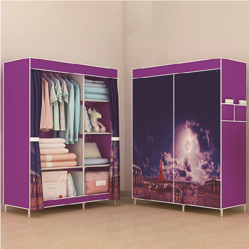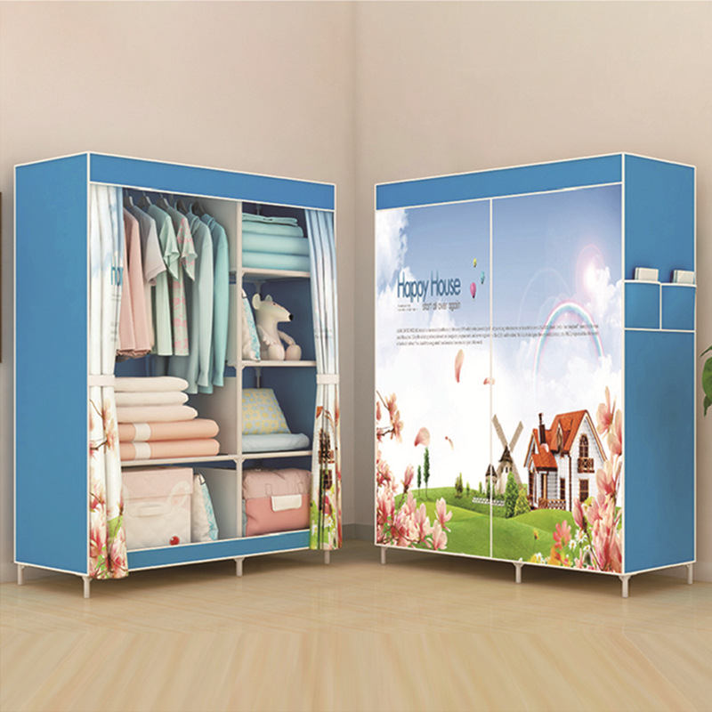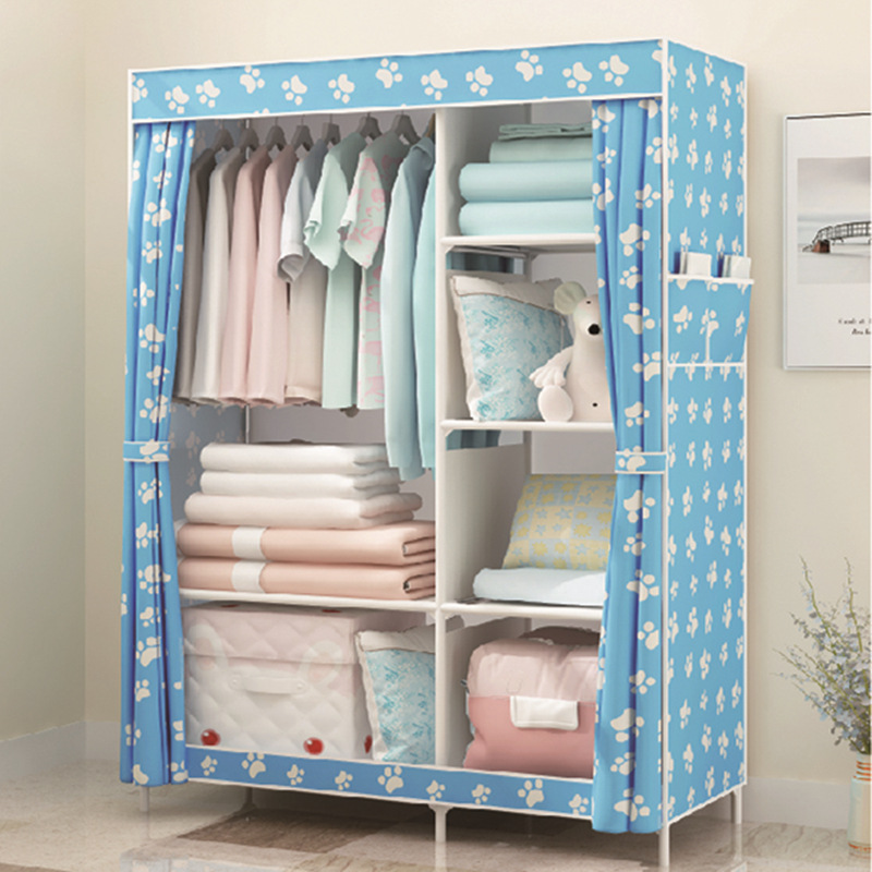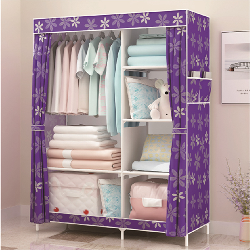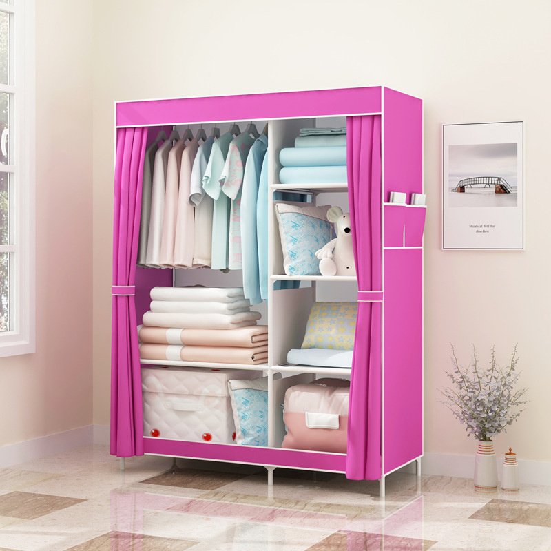 Single-pole side-pull fabric wardrobe, foldable fabric wardrobe, simple assembly steel pipe wardrobe, one-piece dropshipping for rental apartments
