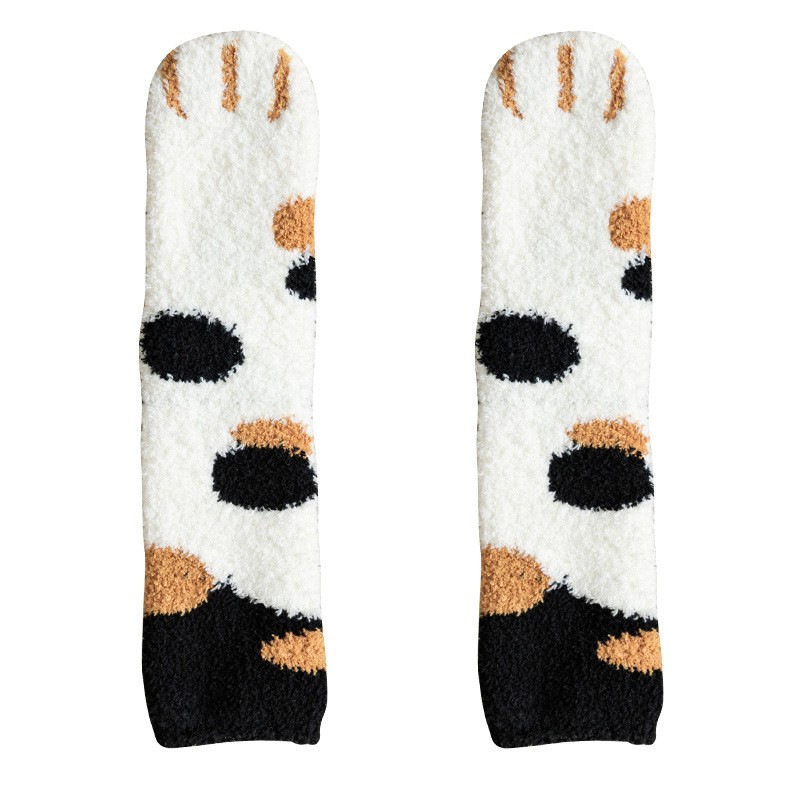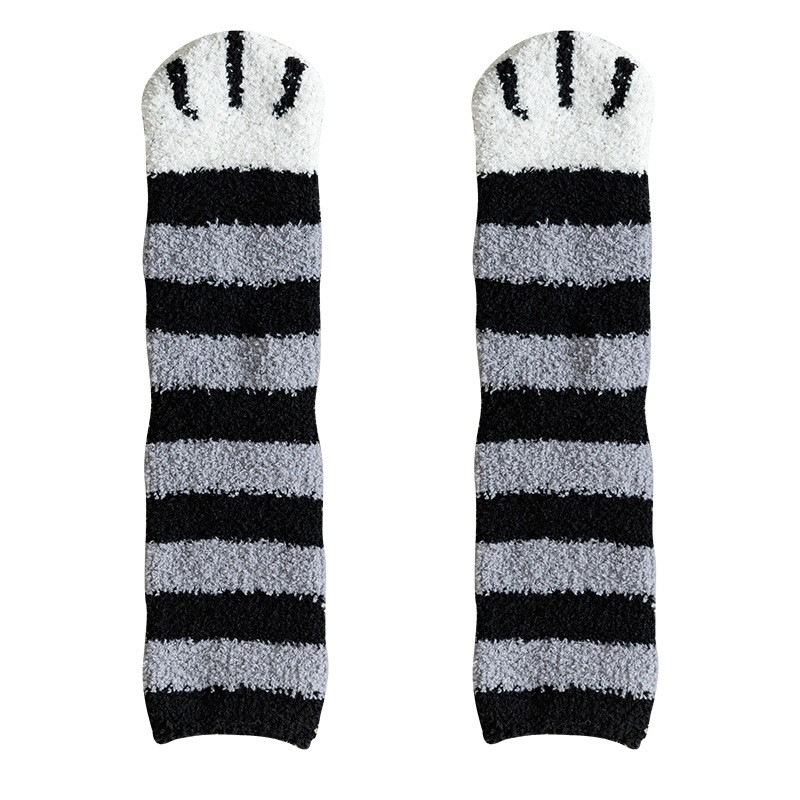 Coral velvet children's autumn and winter cute cat claw socks, thick warm indoor slipper socks, medium length home sleep socks, towel socks