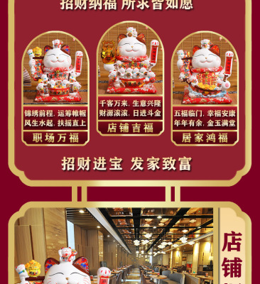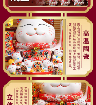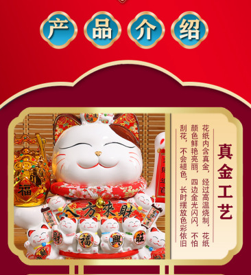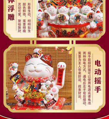 Juyuan Cat Large Money Cat Waving Ceramic Ornament Automatic Waving Cashier Desk Home Store Opening