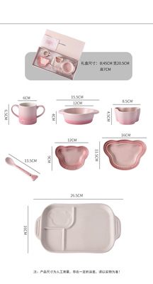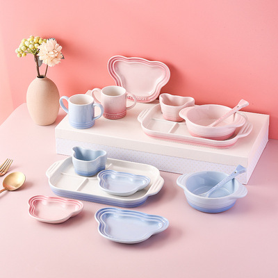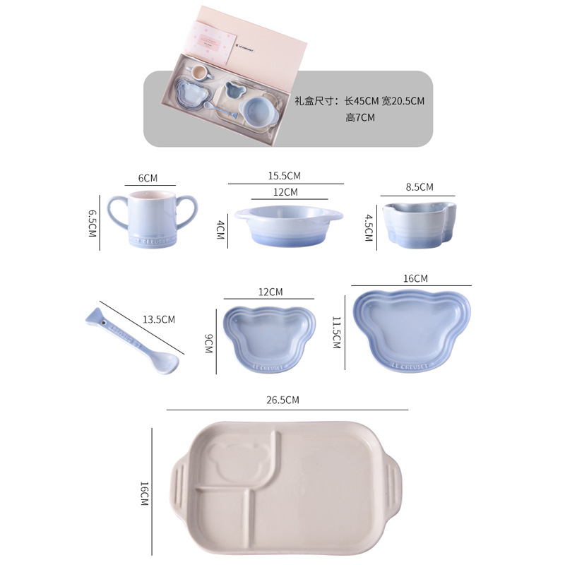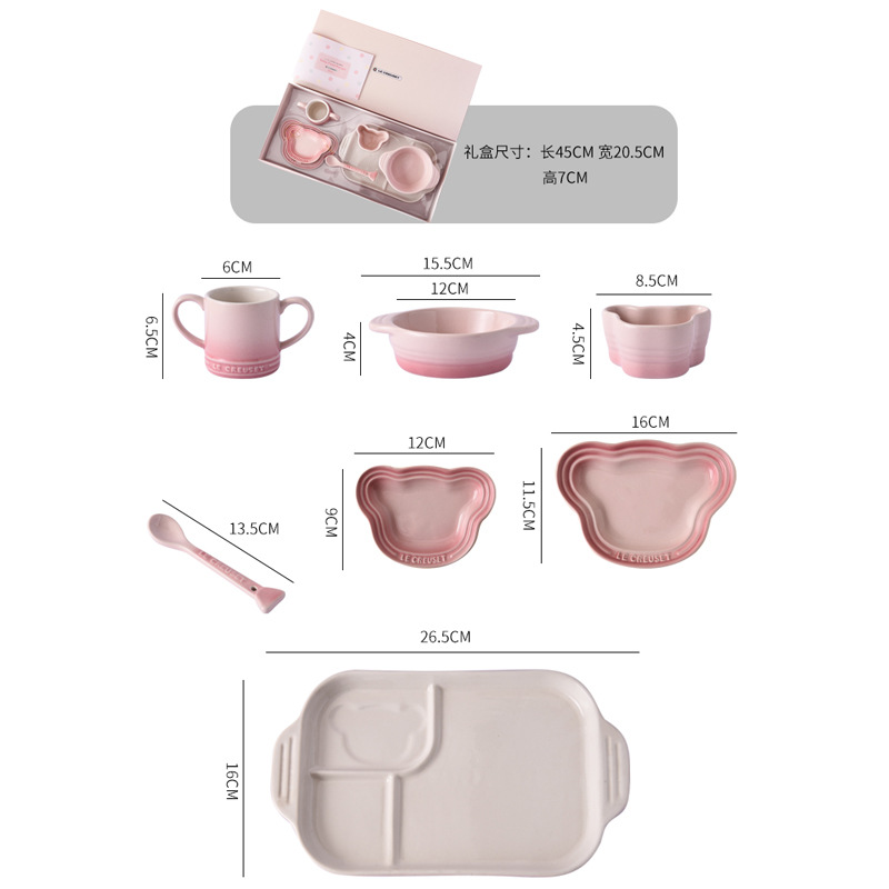 Cool Color LE CREUSET Children's Tableware 7-Piece Set Baby Pink and Blue Household Child Single Use