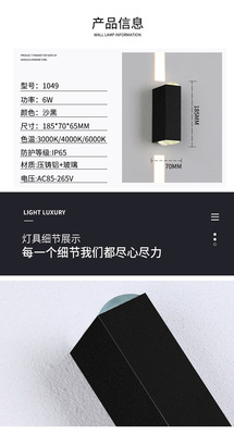 Outdoor waterproof spotlight double head LED wall washer for courtyard, corridor, hallway, staircase, one beam of light, exterior wall, door, wall lamp