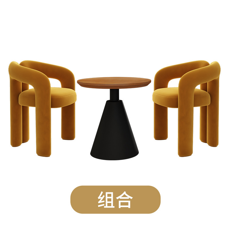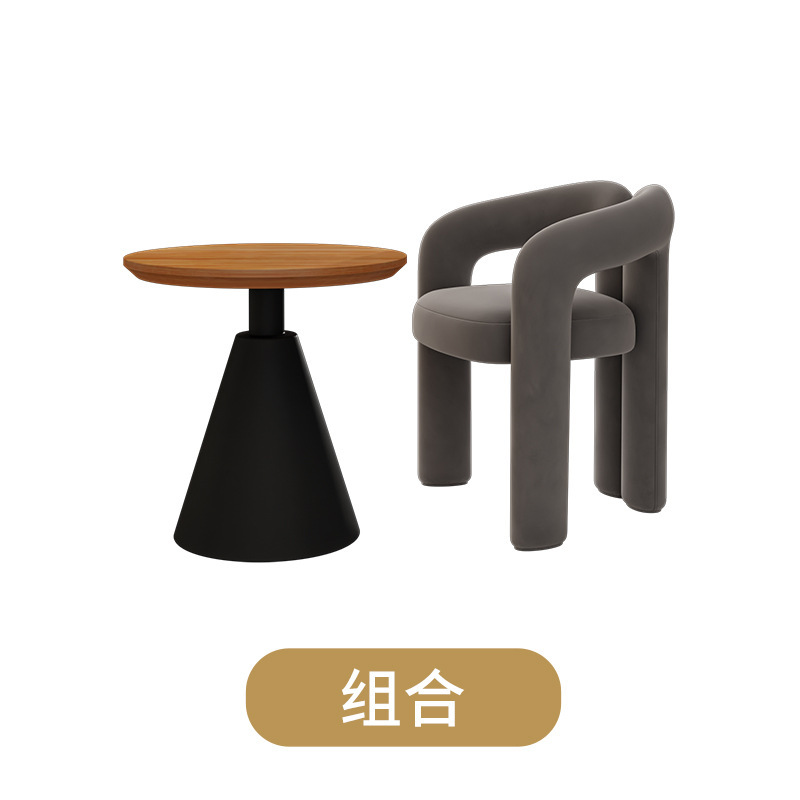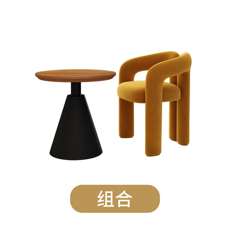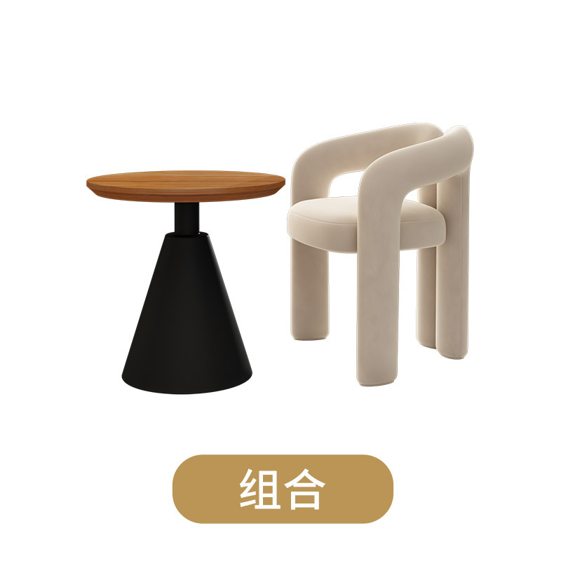 Cream-colored single chair + black side table 60*60*60