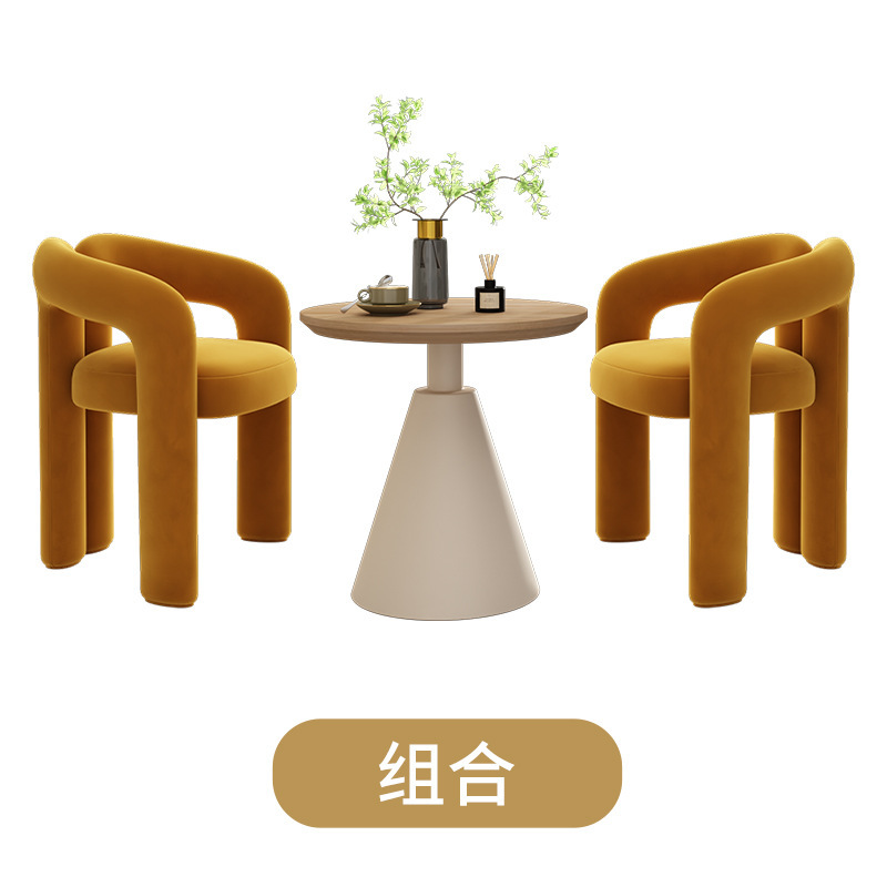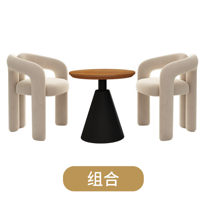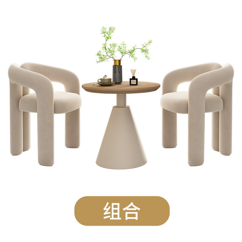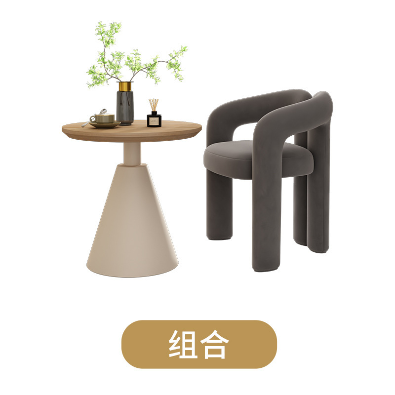 Cream-colored single chair + cream-colored side table 60*60*60