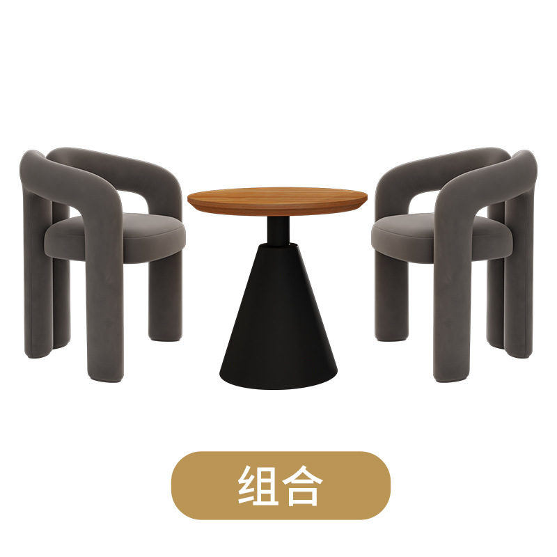 Gray single chair 2 pieces + Cream-colored side table 80*80*75