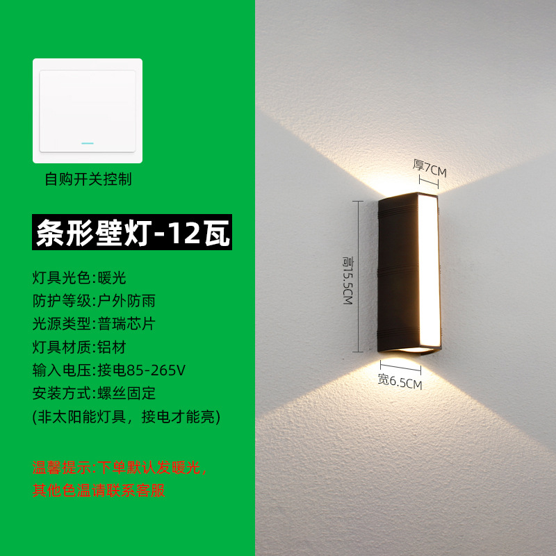 Modern minimalist waterproof courtyard light with up and down illumination, LED wall light for outdoor pathways, front doors, and balconies