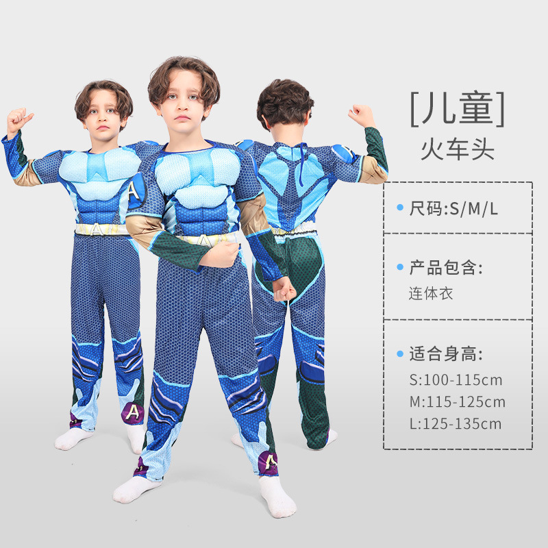 萬聖節服裝兒童復仇者聯盟美國隊長鋼鐵俠超人蜘蛛俠擎天柱肌肉服
