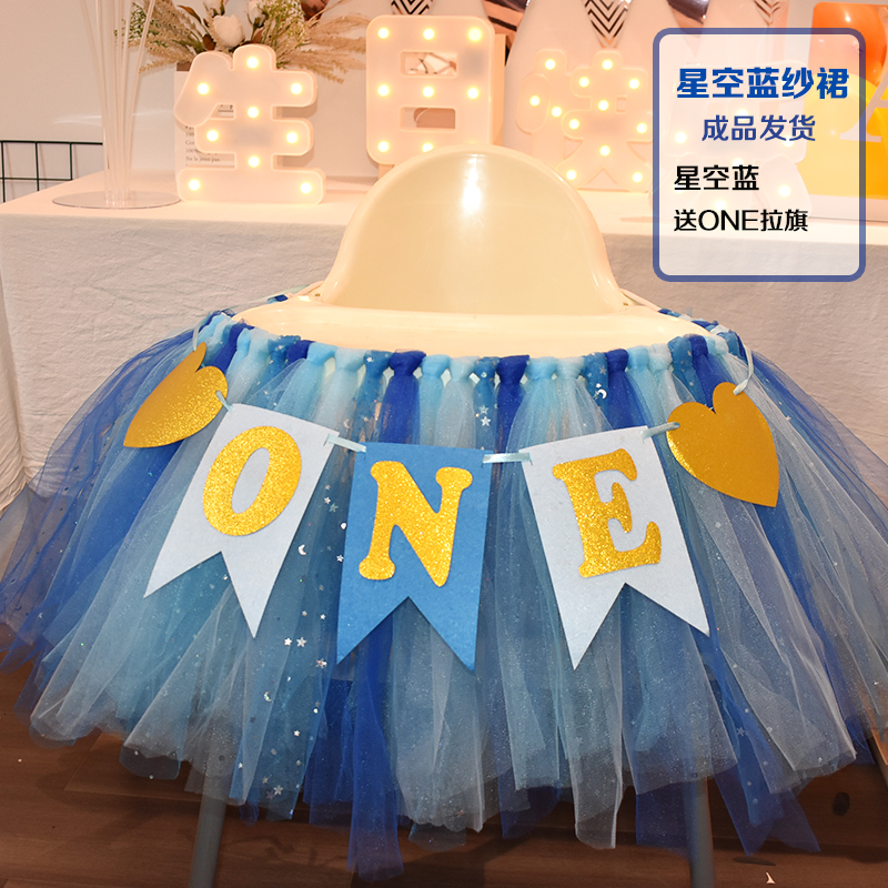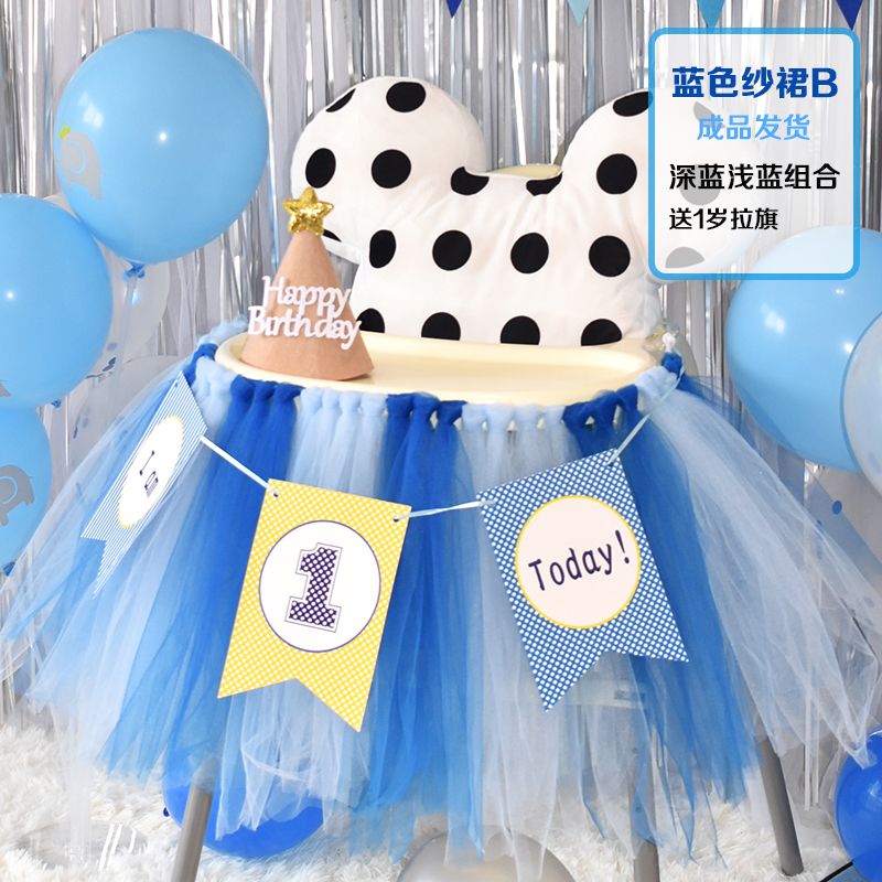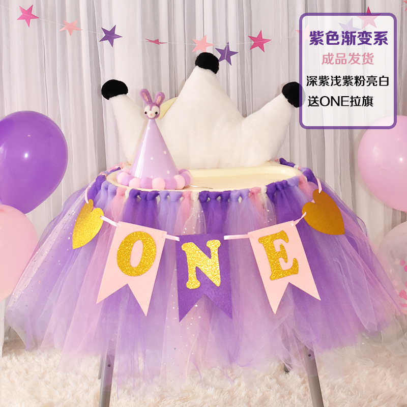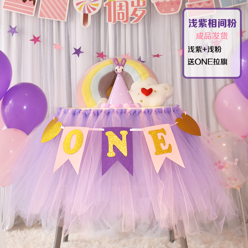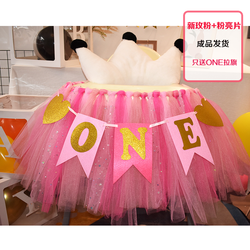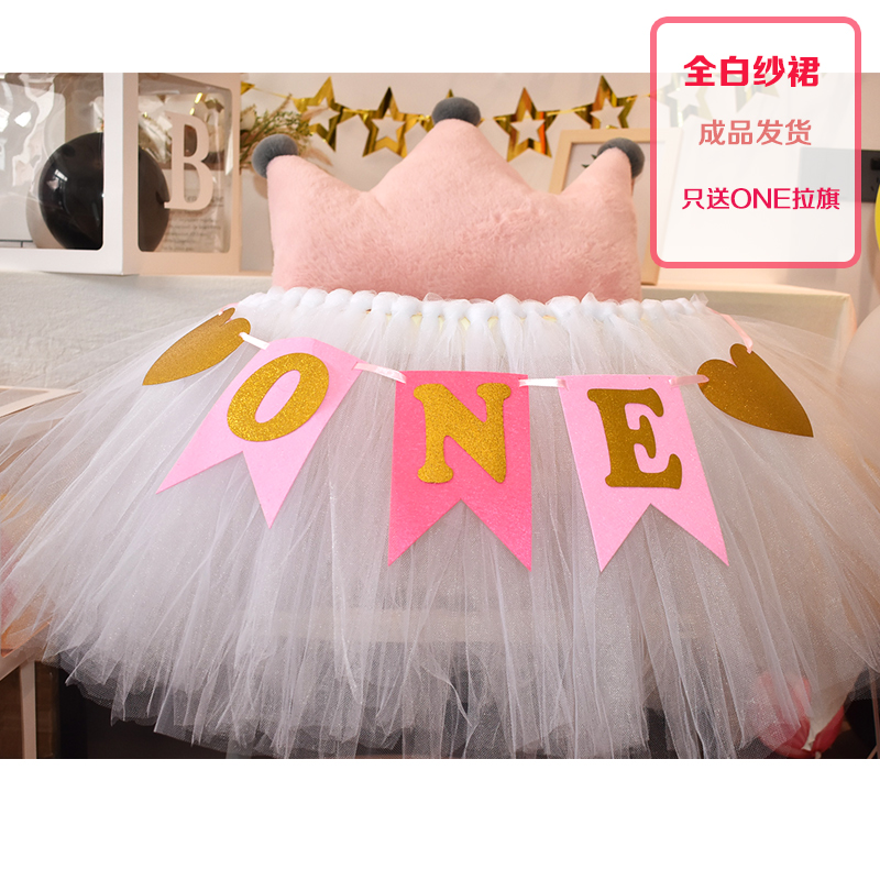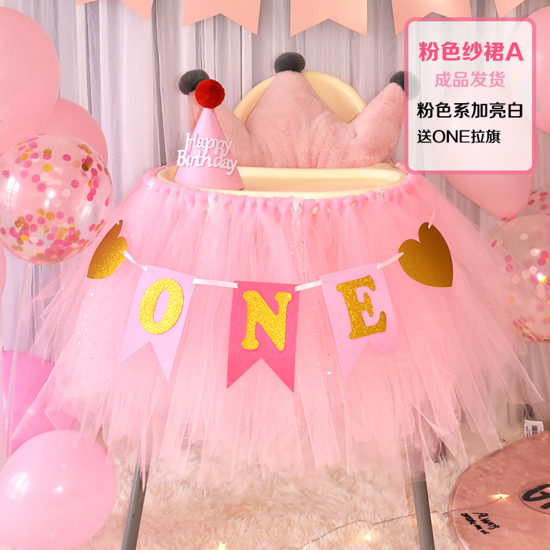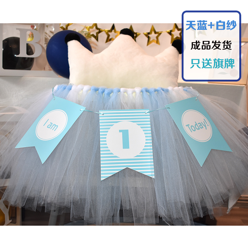 批發一周歲寶寶生日餐椅紗裙裝飾tutu紗椅紗場景氣球布置圍紗桌裙