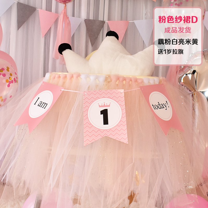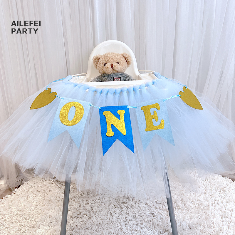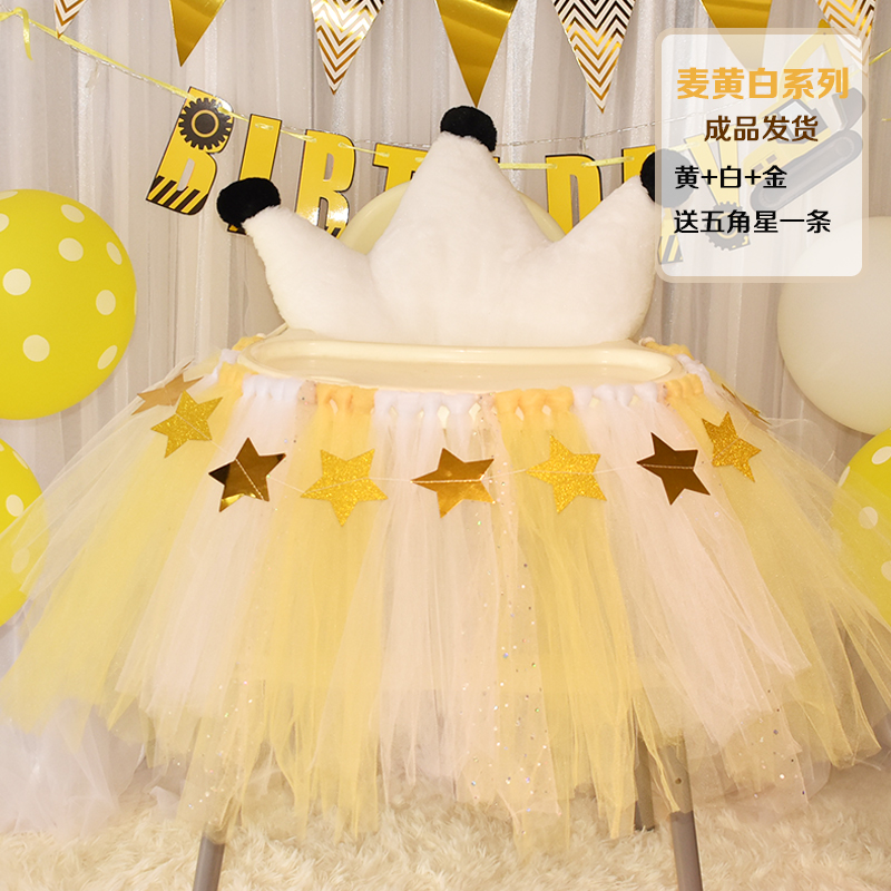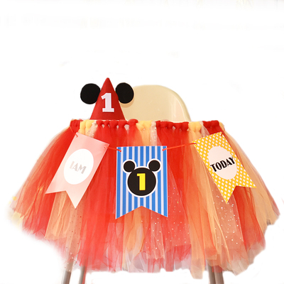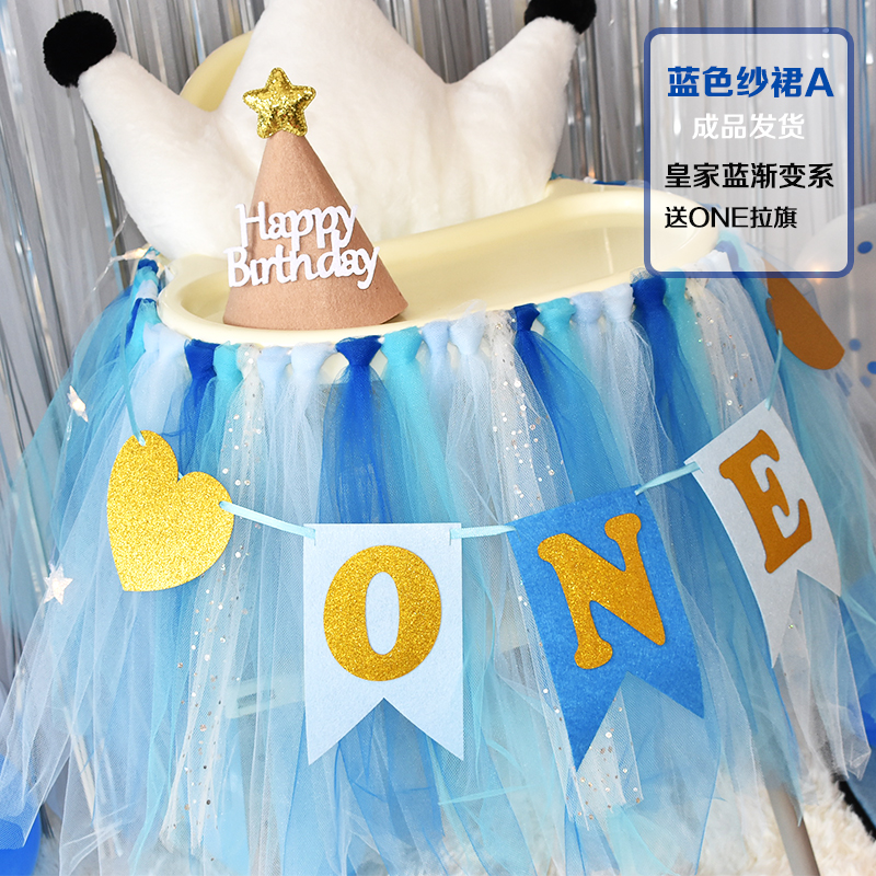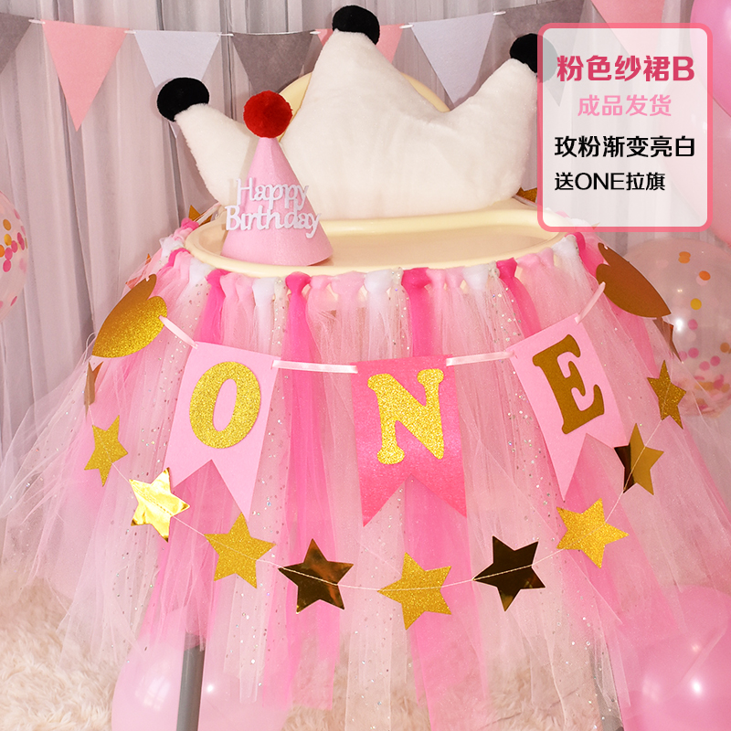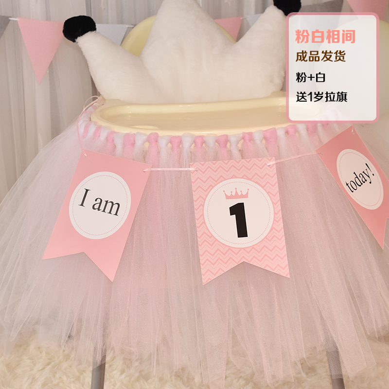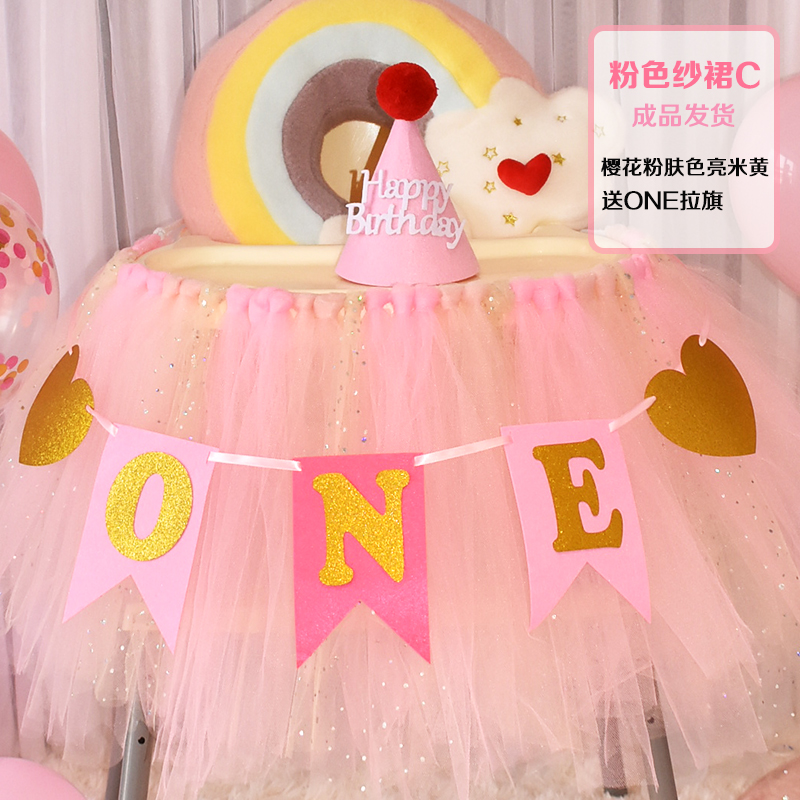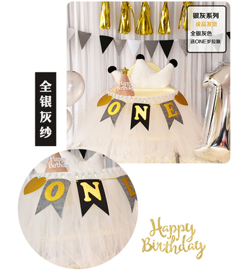 批發一周歲寶寶生日餐椅紗裙裝飾tutu紗椅紗場景氣球布置圍紗桌裙