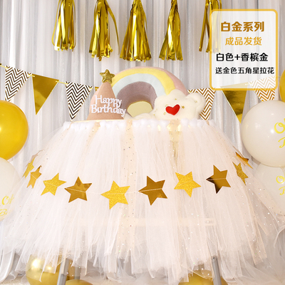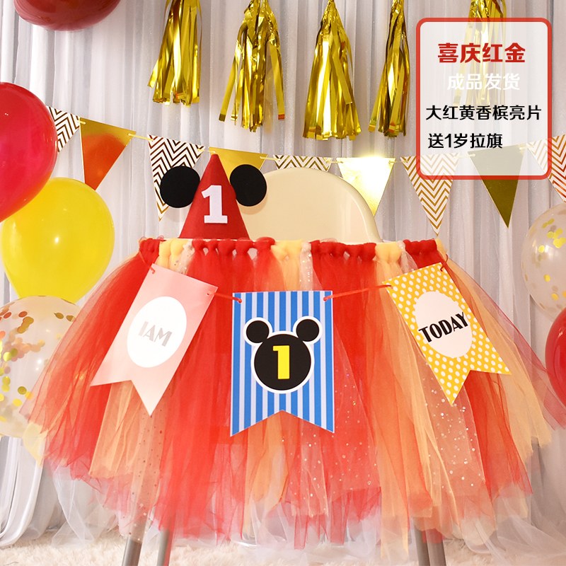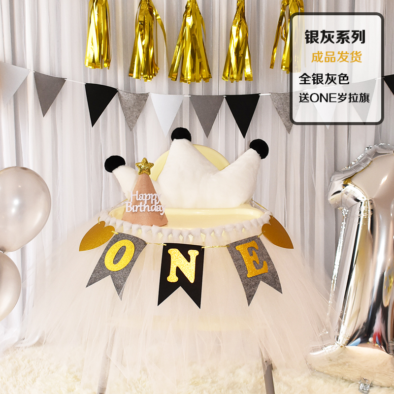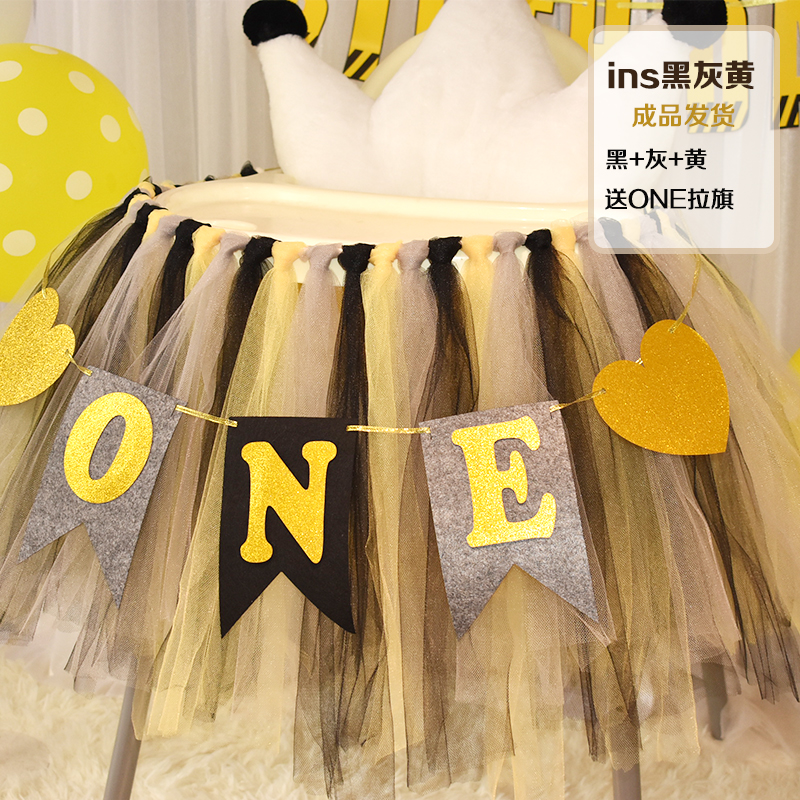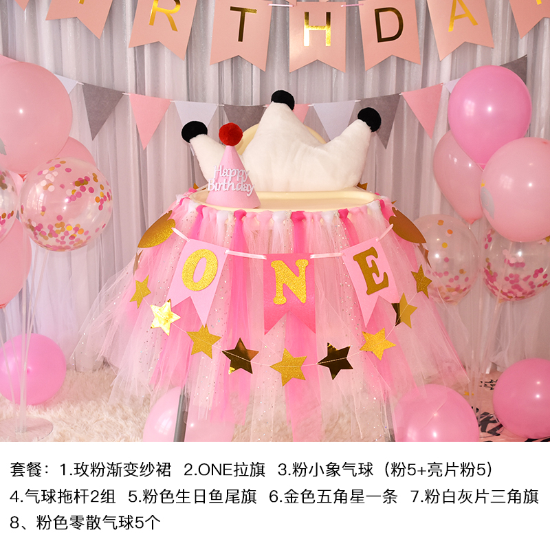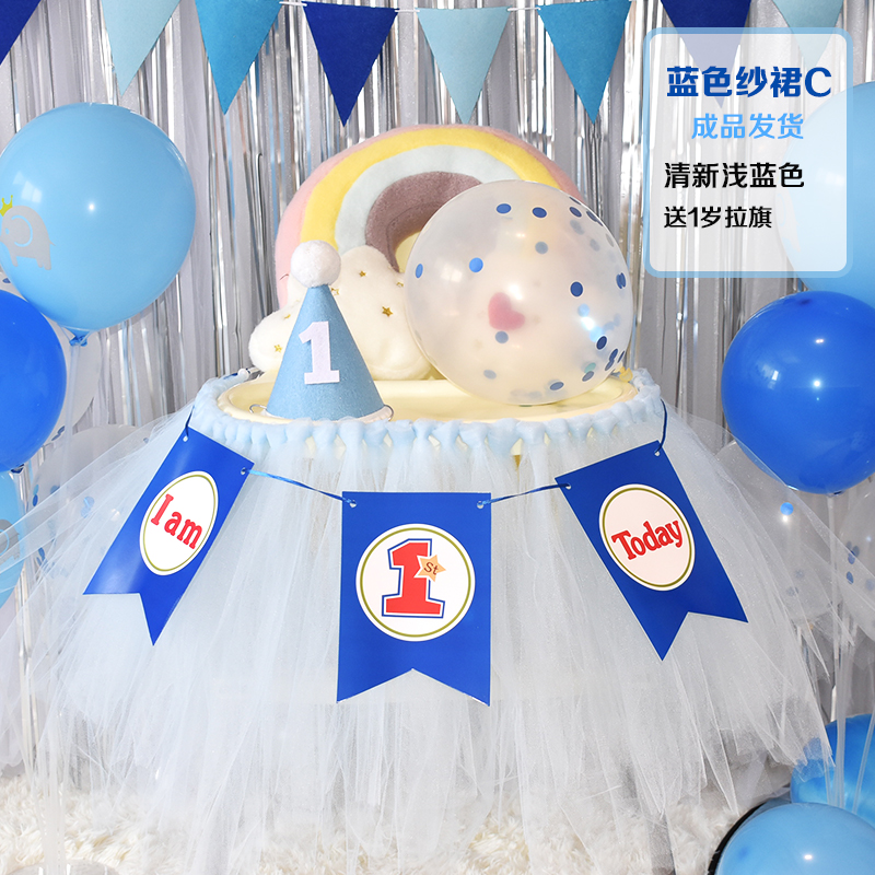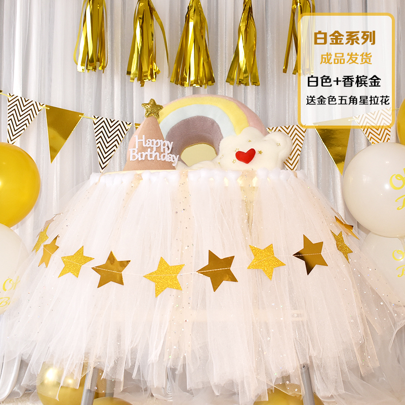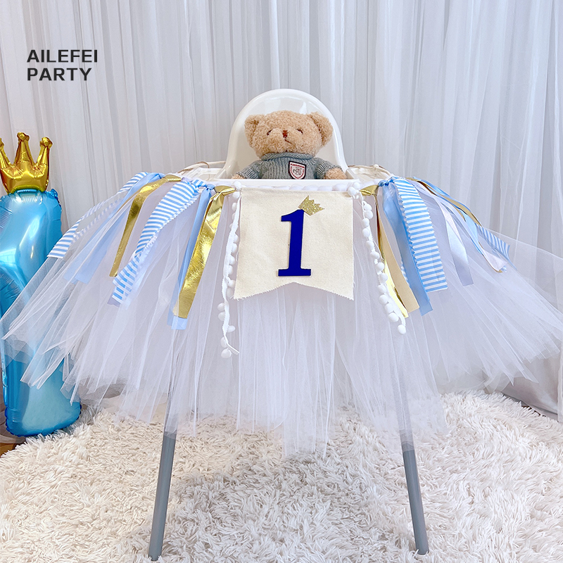 批發一周歲寶寶生日餐椅紗裙裝飾tutu紗椅紗場景氣球布置圍紗桌裙