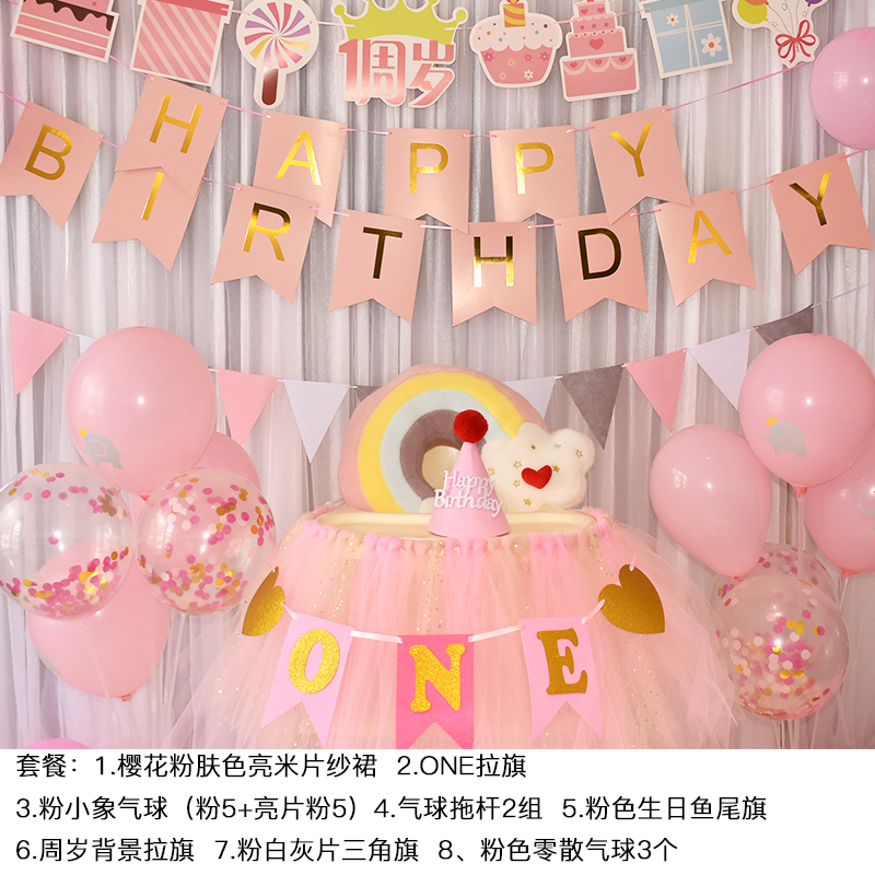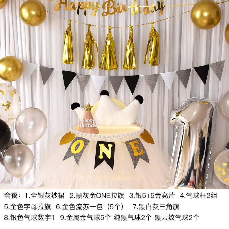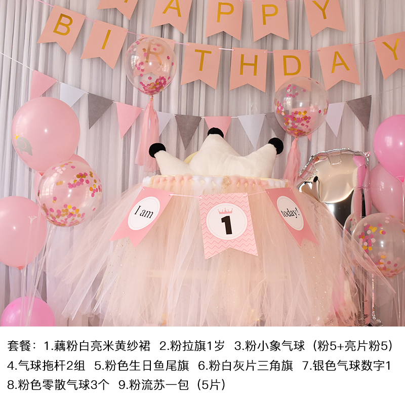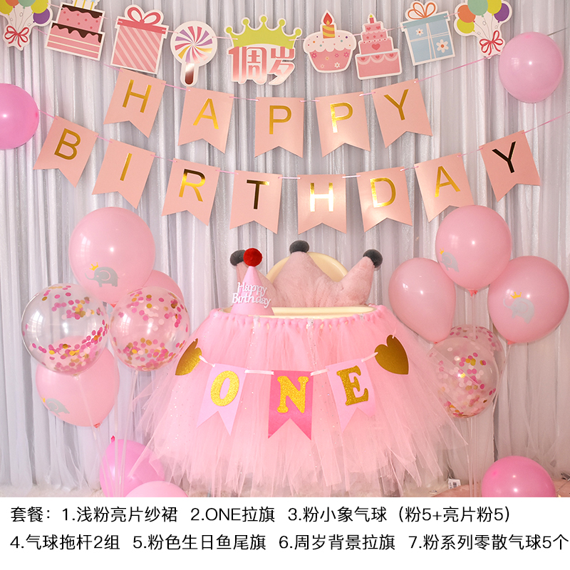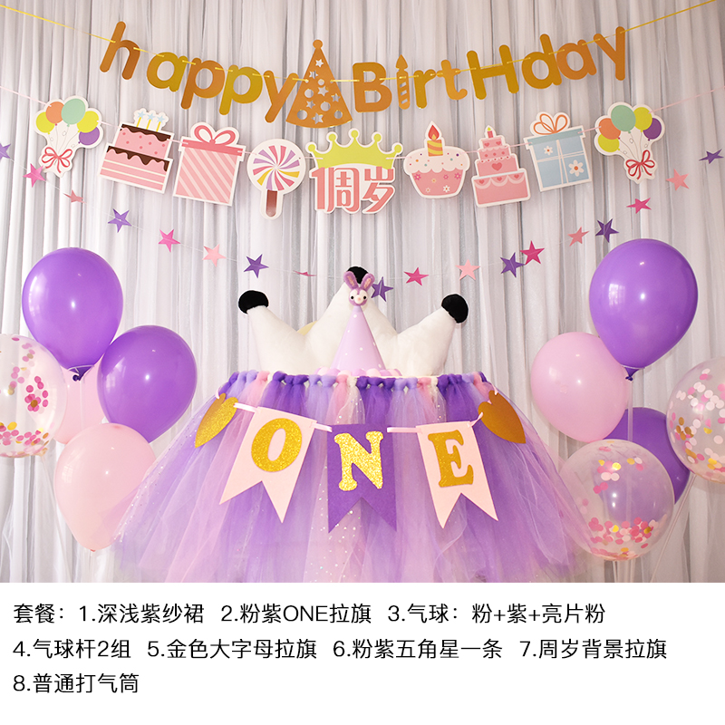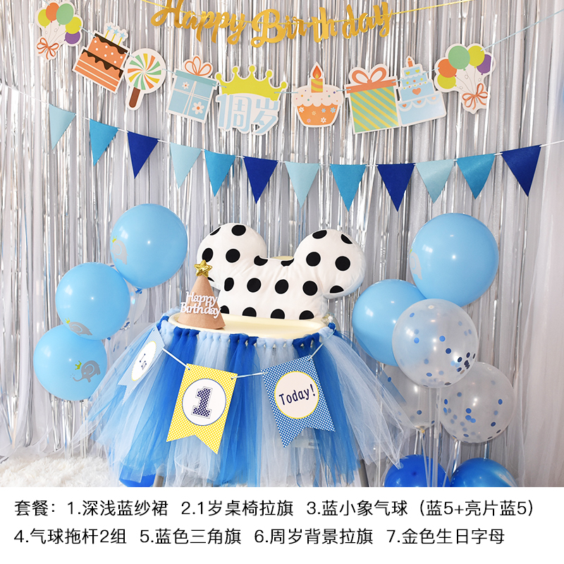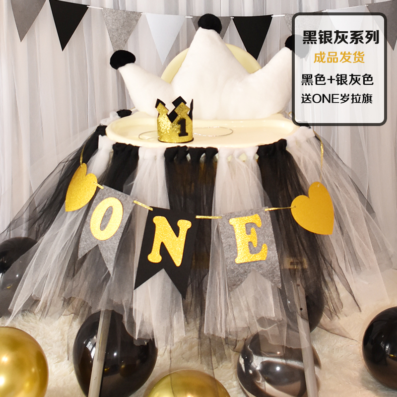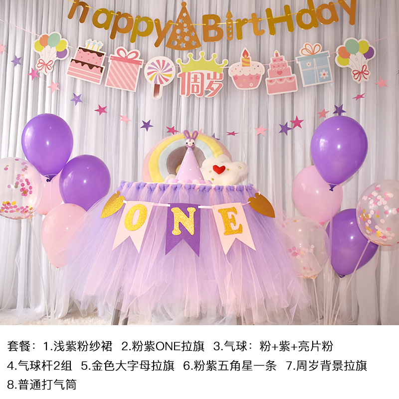 批發一周歲寶寶生日餐椅紗裙裝飾tutu紗椅紗場景氣球布置圍紗桌裙