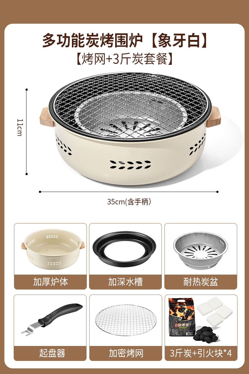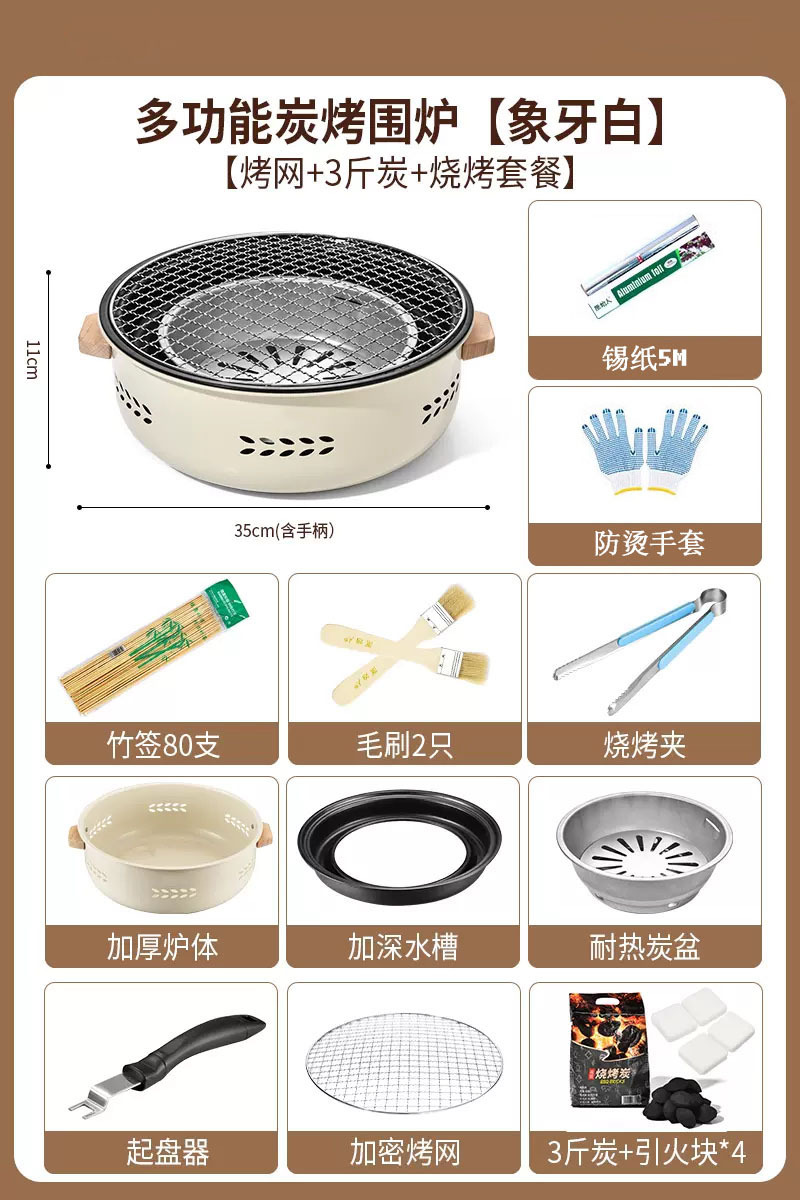 Neutral without punctuation (surrounded by a furnace with white color + baking rack + baking pan + 3 pounds of charcoal + fire starters x 4 + five-piece set)