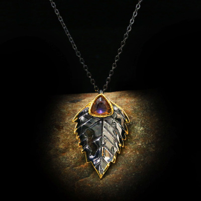 歐美時尚誇張黑金三件套配飾女士雙色葉子戒指項鍊耳釘