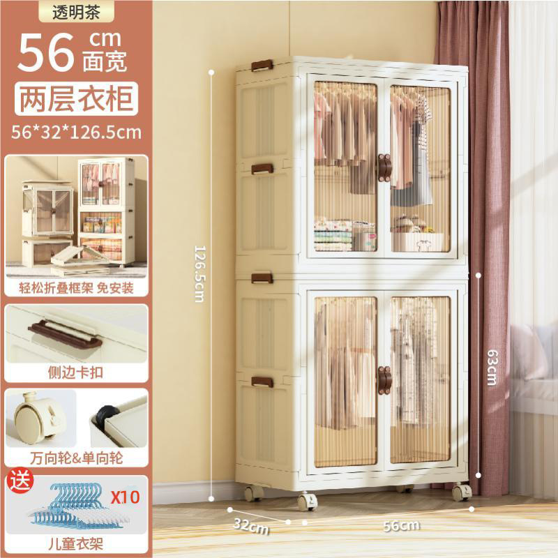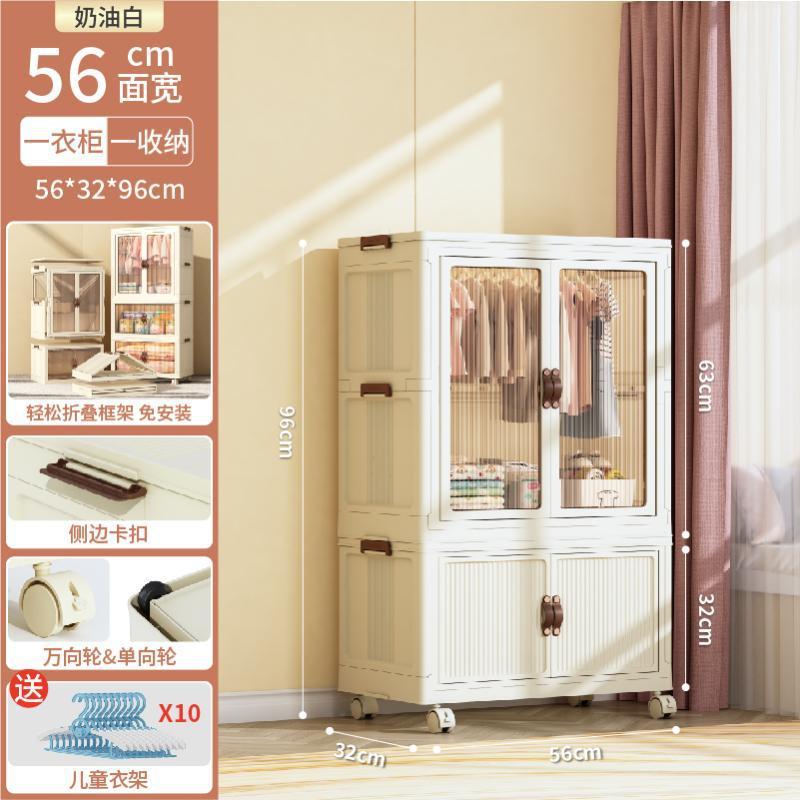 【56面寬-奶油色】-1衣櫃+1摺疊櫃