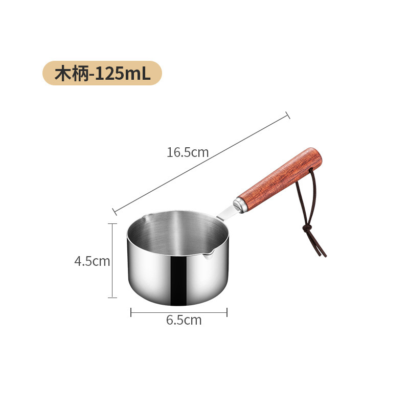 A hot oil pan with 304 stainless steel for household use, mini milk pan with wooden handle, small frying pan, splash-proof frying pan.