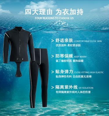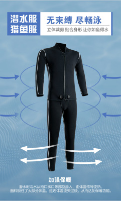 Professional Men's Diving Suit for Deep Diving and Fishing, 3/5mm Freediving Outdoor Warming Split Zippered Diving Suit and Pants