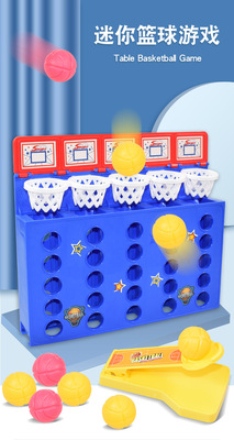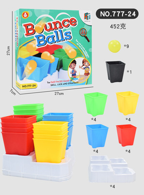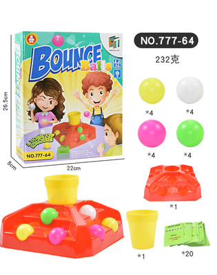 Cross-border desktop puzzle spring toy two-person spring fun four-in-a-row ball, mini portable jump ball projection