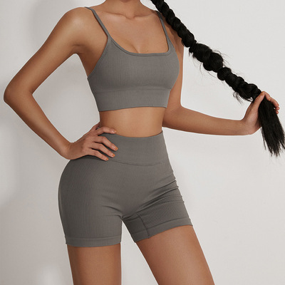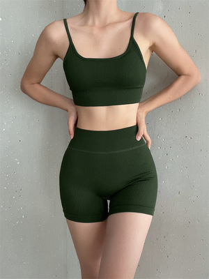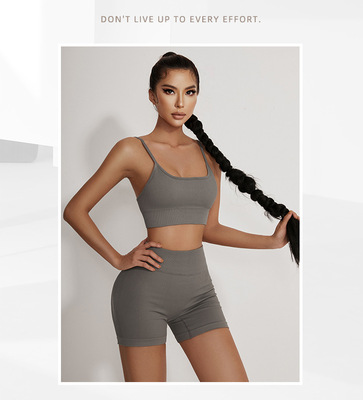 681 Sexy Running Training Bra Pad Shorts for Women's Yoga Fitness Casual Seamless Outer Wear European and American