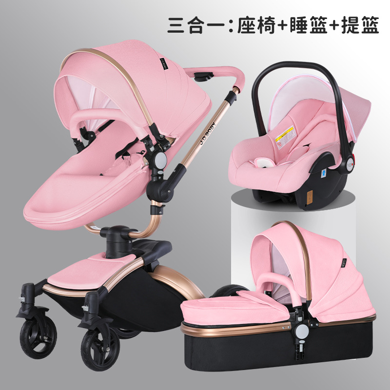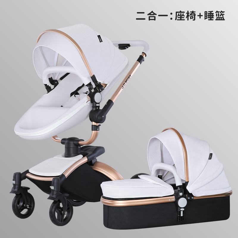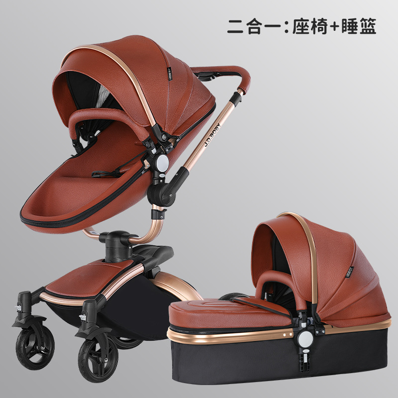 嬰兒推車可坐可躺摺疊雙向蛋殼高景觀360旋轉皮質寶寶避震嬰兒車