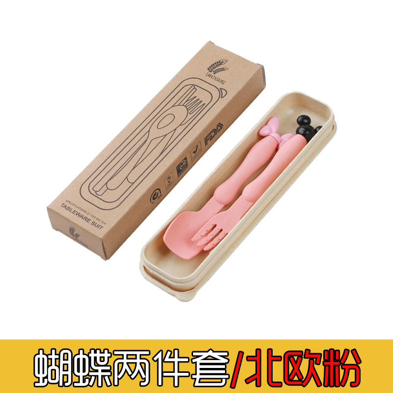 Portable Wheat Straw Tableware Set for Kids - Cartoon Spoons and Forks Two-Piece Set, Outdoor Tableware Gift with Logo Printing