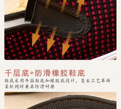 老北京手工布鞋男千層底手工上線鬆緊口休閒套腳老布鞋平絨純布鞋
