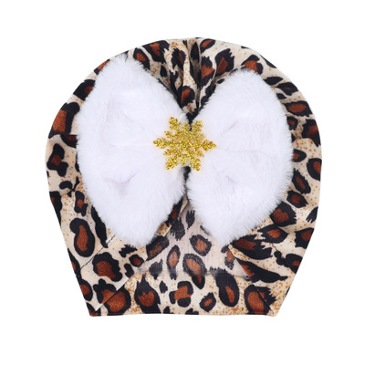 INS外貿款秋冬兒童純色絲絨帽子嬰幼兒保暖胎帽蝴蝶結雪花印度帽