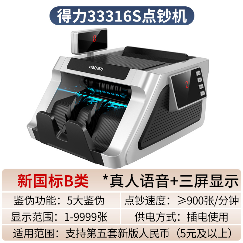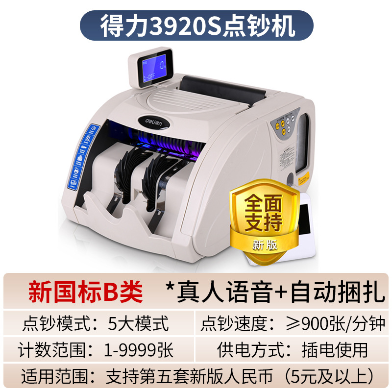 The Delixi 33302S bill counting machine supports the 2024 new version of RMB intelligent voice C-class portable retail bill validator.