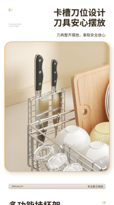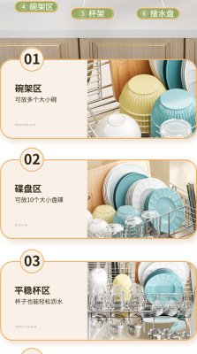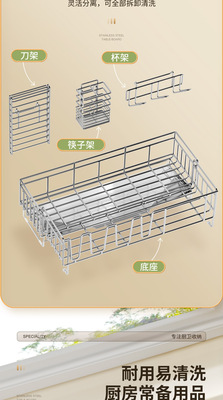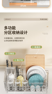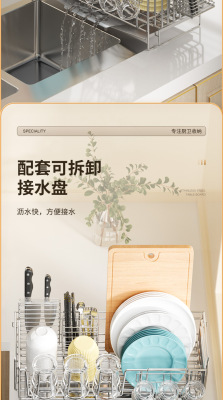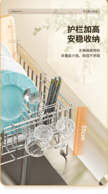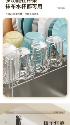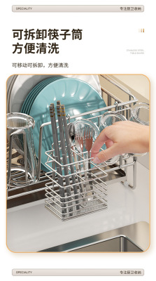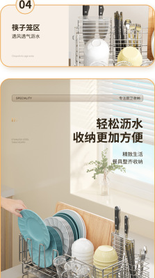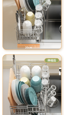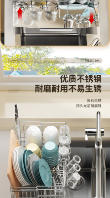 Cross-border stainless steel kitchen drain rack plate bowl dish storage rack plate bowl extendable drain basket bowl chopsticks knife storage box