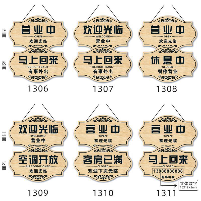 Specification: 1311 Open for Business + Coming Back Soon (Mobile Number Can Be Handwritten)