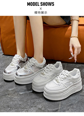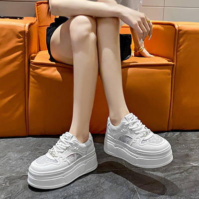 Mesh Platform White Women's Shoes 2024 New Summer Thin Breathable Mesh Heeled Loafers