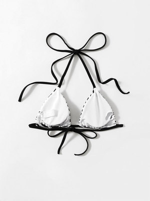 2024新款歐美條紋掛脖系帶泳衣女士性感辣妹游泳溫泉比基尼上衣