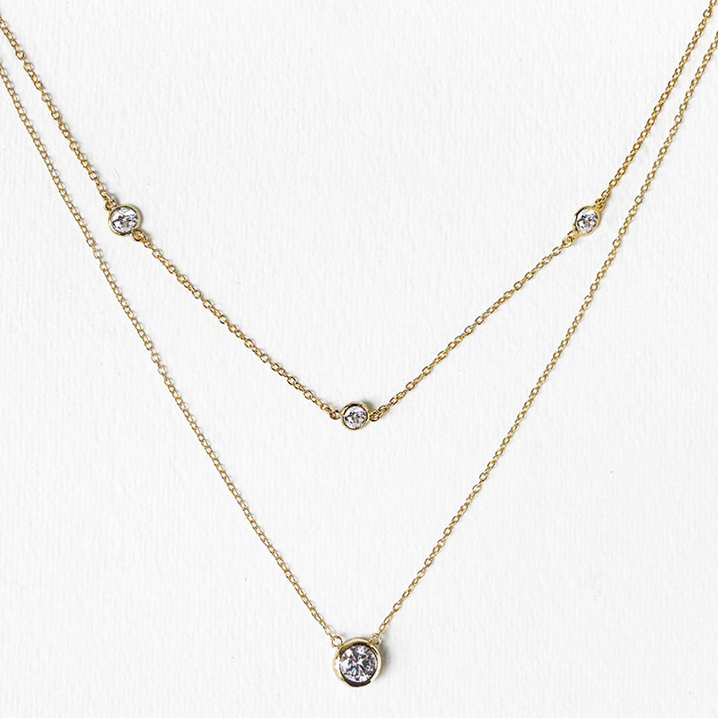 Simple Diamond Pendant Necklace European and American Fashion Light Luxury Bridal Wedding Back Chain Sparkling Accessory for Women