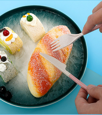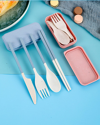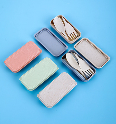 Folding Tableware Portable Tableware Wheat Straw Tableware Box Set Spork Chopsticks Knife Fork Student 3-4 Piece Set