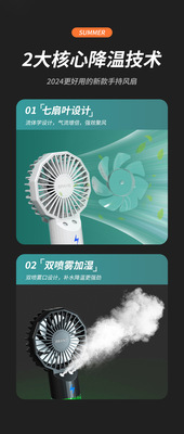 2024 Summer New Arrival Dual-Port Spray Handheld Mini Fan—Desktop Humidifier, Hydrating, and Silent Fan