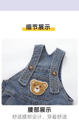 Baby Cowboy Belt Pants Stylish Retro Korean Version Children's Spring Outfit New Boys and Girls Baby Cartoon Casual Pants