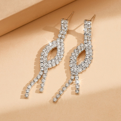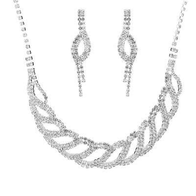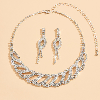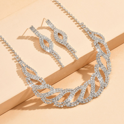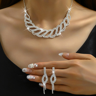 2024新款時尚歐美 婚禮裝飾 銀色鑲鑽新娘禮服項鍊耳環首飾套裝