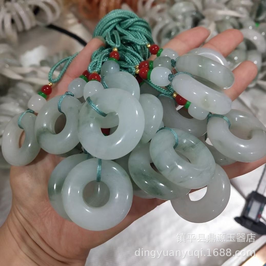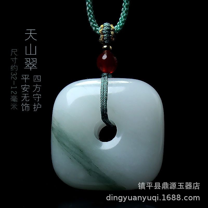 新疆天山翠玉平安無事牌吊墜金絲玉麵包圈掛件平安扣牡丹花飄翠玉