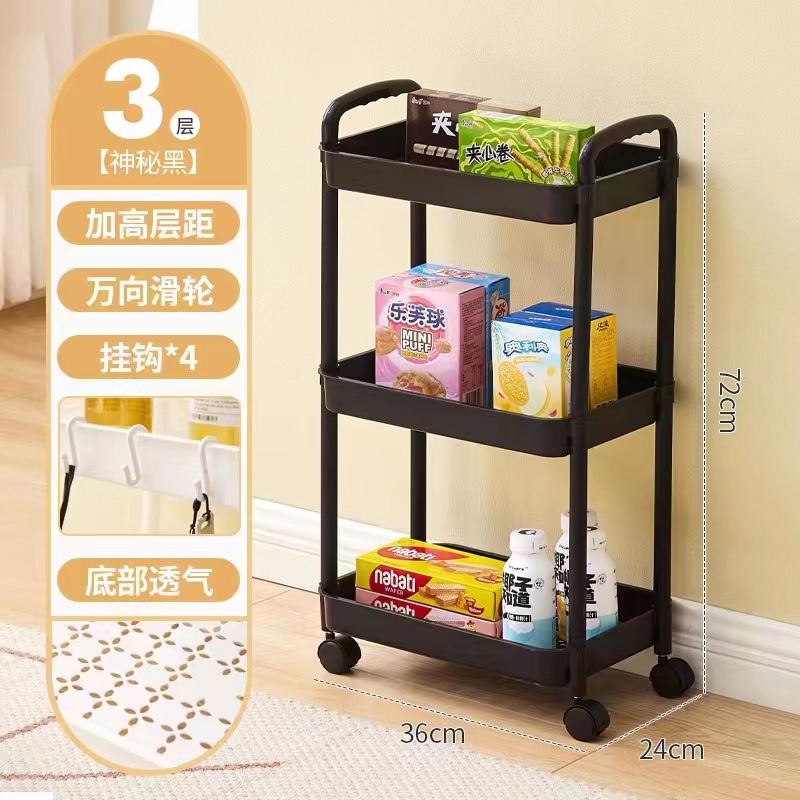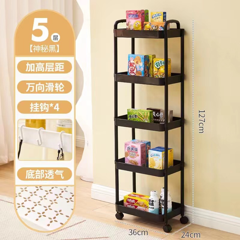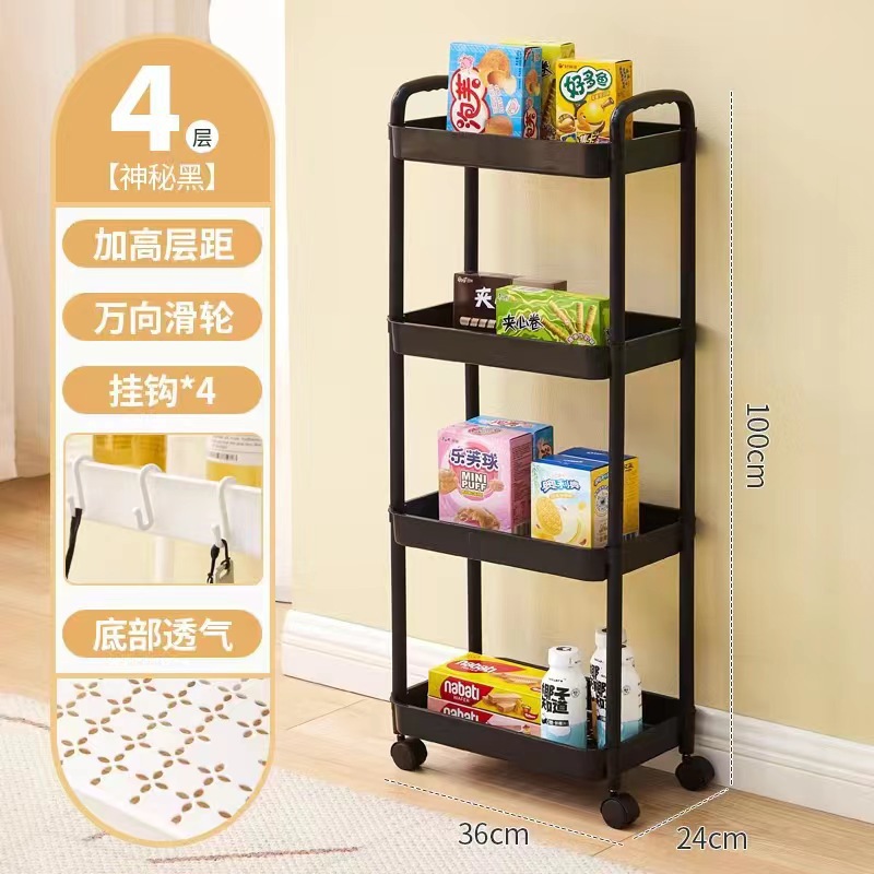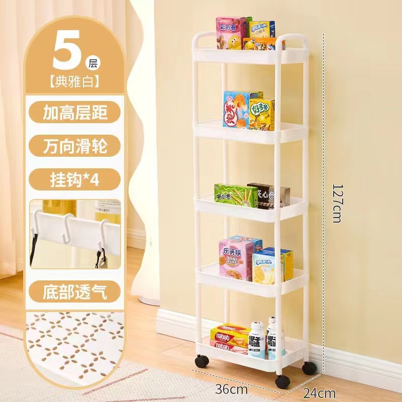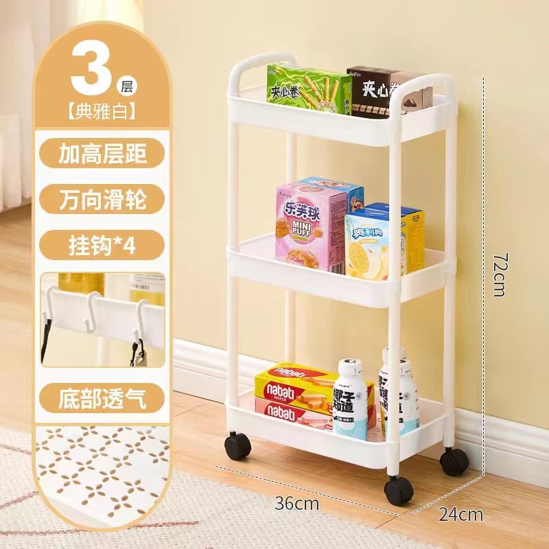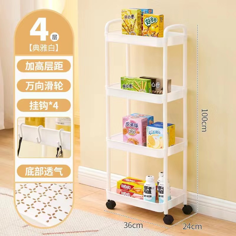 Floor-standing movable storage rack, kitchen living room snack cabinet miscellaneous storage rotating multifunctional PP storage rack