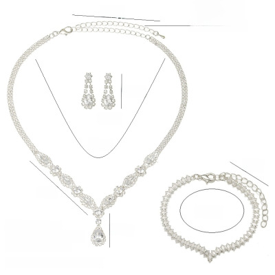 歐美首飾批發 跨境貨源鋯石新娘首飾珠寶耳環手鍊項鍊套裝