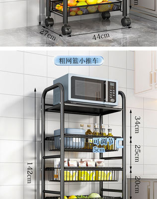 Kitchen shelving unit, multi-tiered floor-standing mobile storage rack, household storage trolley, multifunctional vegetable and fruit stand