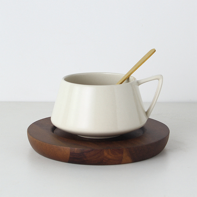 米白色【一杯一勺+實木杯碟】